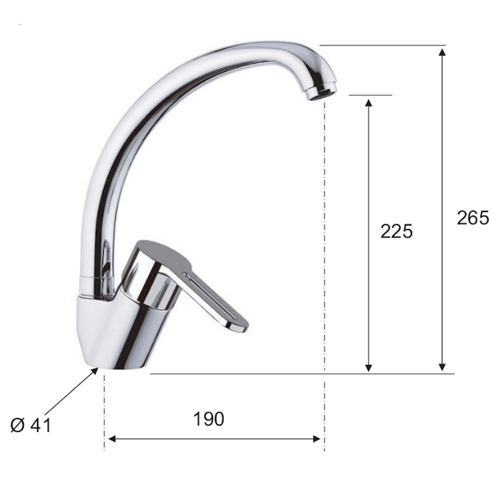 Miscelatore lavello cromato canna alta 45° smart daniel