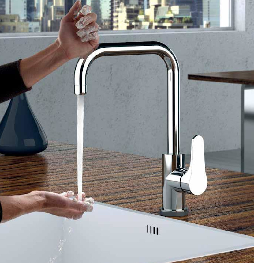 Miscelatore monocomando 45° per lavello serie Serena Daniel in ottone cromato con canna alta quadrata e bocca girevole. 100% Made in Italy. Garanzia 5 anni. Cartuccia e flessibili prodotti in Italia e totalmente a norma alimentare. La serie Serena è un prodotto 100% testato e realizzato con materiali di alta qualità. Facile da installare. Finitura cromata resistente e brillante nel tempo.