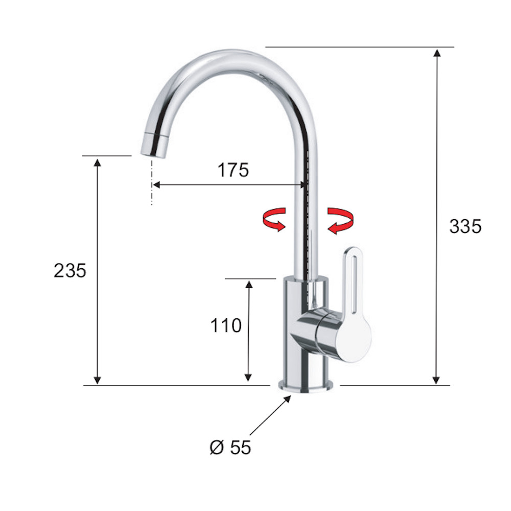 Miscelatore rubinetto per lavello monoforo in ottone cromato con canna alta girevole serie Smart Daniel. 100% Made in Italy. Garanzia 5 anni. Cartuccia e flessibili sono prodotti in italia a norma di legge per uso alimentare. Kit di fissaggio incluso. La finitura cromata è resistente e brillante nel tempo. La rubinetteria è dotata di attacchi standard da 1/2 correlata già di guarnizione.Il miscelatore con la sua canna alta facilita il riempimento di contenitori alti. Ideale per la cucina o lavanderia.