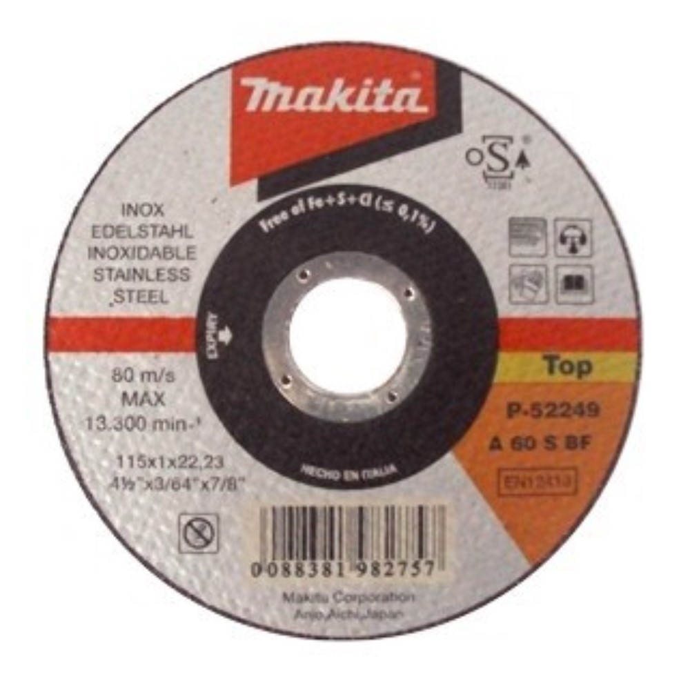 Disco per taglio di lamiere in acciaio inox, acciaio ad alta resistenza e ferro Makita. Disco sottile con centro piano. Da montare su smerigliatrice angolare. Velocità massima di impiego 13’300 rpm. Diametro 115 mm, spessore 1 mm. Rispetta le norme EN12413. La qualità dei prodotti Makita è di altissimo livello; è presente da più di 40 anni nel mercato nazionale degli elettroutensili professionali.
