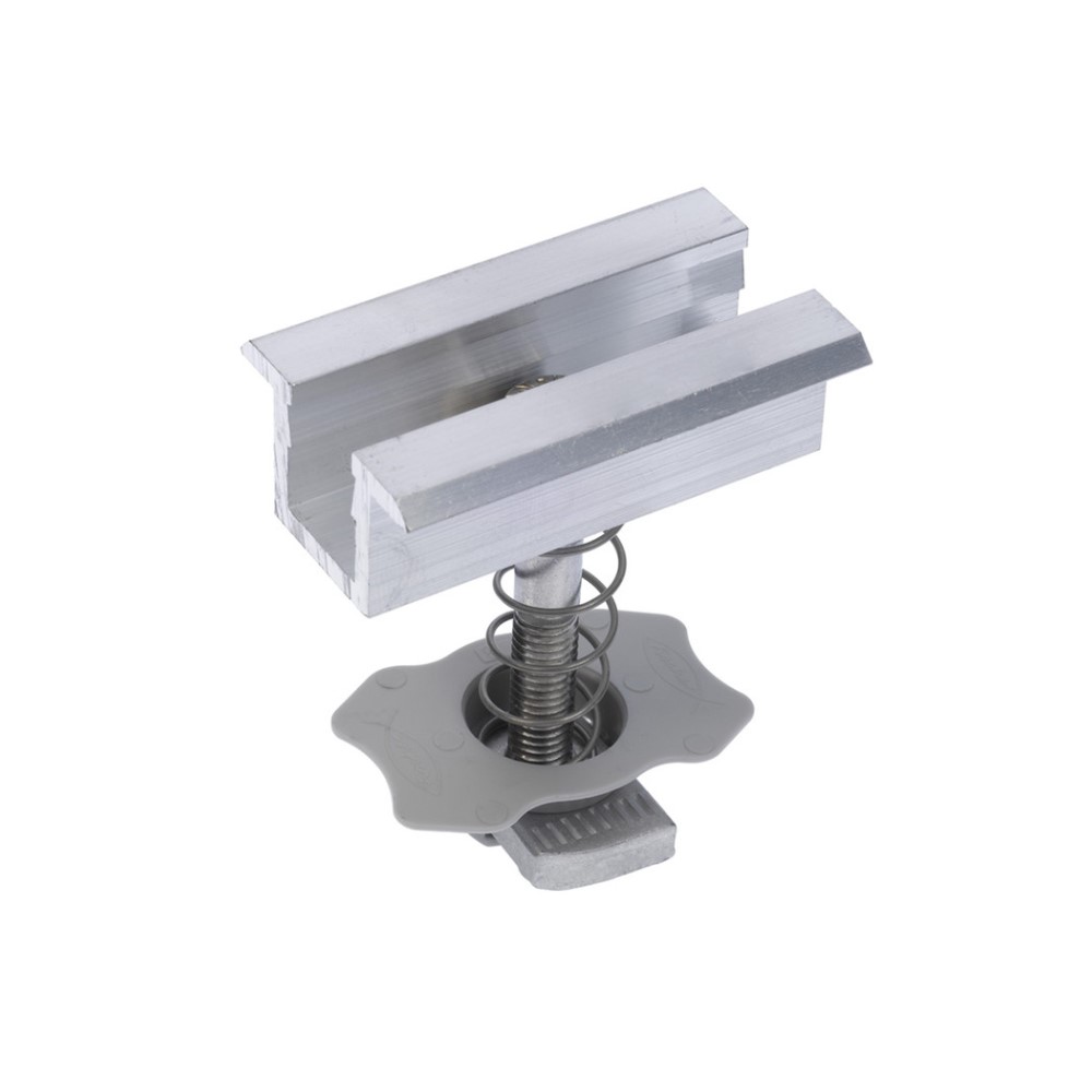 Morsetto preassemblato centrale per moduli fotovoltaici con cornice in lega di alluminio AW 6060 T66 secondo EN 755-2:2013. Vite con testa cilindrica con inserto esagonale incassato TCEI in acciaio inossidabile A2-70 secondo EN ISO 3506-1/2:2009. Dado testa a martello FCN AL in lega di alluminio AW 6060 T66 secondo EN 755-2:2013 e nylon PA6 grigio. I morsetti preassemblati possono fissare tutti i moduli fotovoltaici con cornice con spessore da 26,5 mm a 50 mm. Grazie al dado testa a martello FCN AL possono essere agganciati e bloccati rapidamente in qualsiasi punto del profilo di supporto. Grazie alla molla rimangono sollevati durante le fasi di serraggio e grazie all’elemento plastico rimangono in posizione non scorrendo nel profilo. Non necessitano di elementi aggiuntivi (viti, rondelle, bulloni). Spessore pannello 33 mm ÷ 39 mm – Filettatura M 8 – Lunghezza vite 40 mm. Idoneo per: