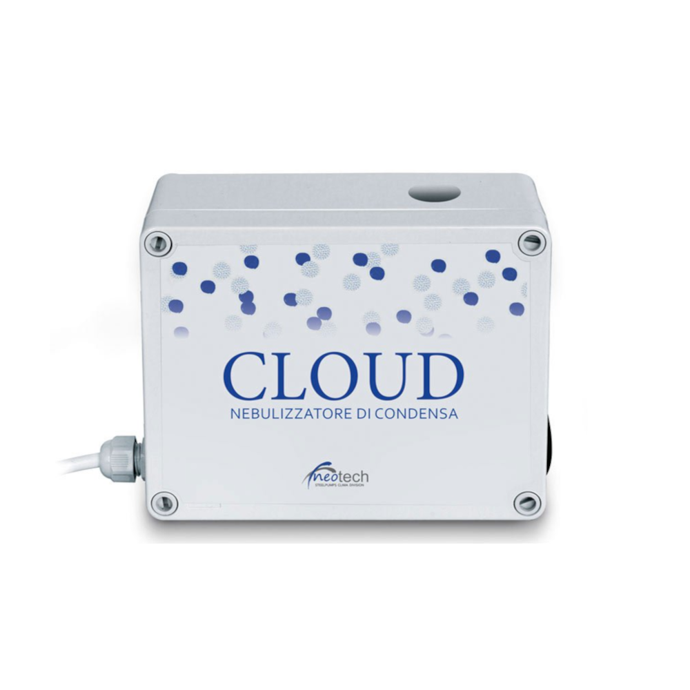 Il nebulizzatore di condensa da 5 Litri Cloud è utilizzato per la nebulizzazione degli scarichi di condensa di impianti di condizionamento. Questo dispositivo estremamente funzionale, è progettato per smaltire la condensa prodotta da condizionatori mono o multi split fino a 8 kW mediante nebulizzazione, la quale viene effettuata silenziosamente, infatti ha un livello sonoro paria a 35dbA.