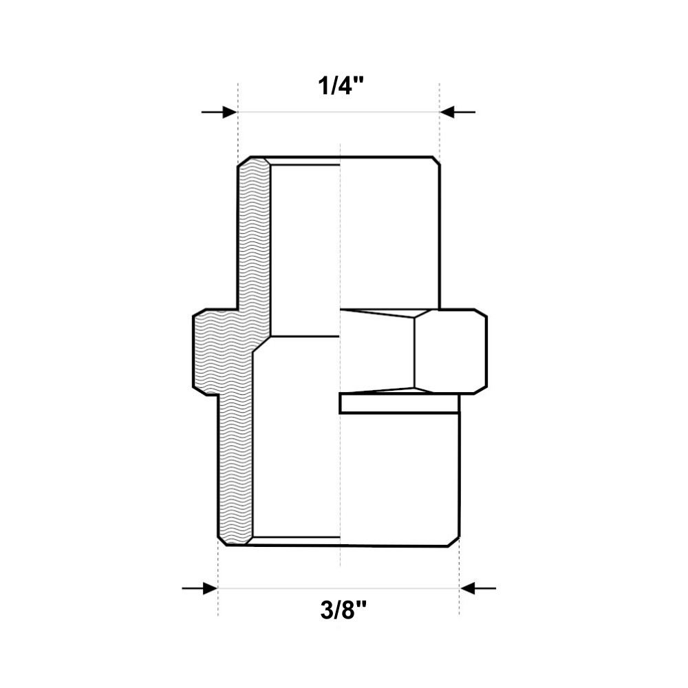 Il raccordo in ottone pesante giallo è utilizzato per collegare due tubi in impianti di riscaldamento, raffrescamento, impianti di acqua sia calda che fredda, aria compressa e in ogni tipo di impianto idraulico, domestico, commerciale, industriale ed agricolo. Inoltre il raccordo in ottone giallo, è idoneo per il trasporto di acqua potabile. La niples è utilizzata per unire due tubi o due raccordi con diverso diametro. Il raccordo ha un attacco maschio con filettatura 3/8″ e un attacco maschio con filettatura 1/4″. La filettatura del raccordo, più lunga e più liscia, permette al tubo di scorrere meglio ed è conforme alla norma UNI EN ISO 228-1:2003.