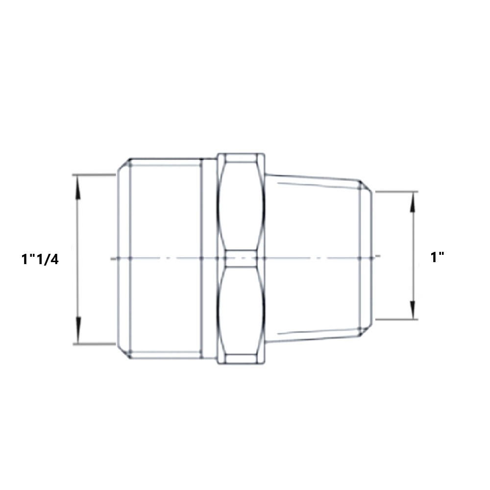 Il raccordo Niples con filettatura maschio maschio con Battuta Piana per Conica realizzato in Ottone Giallo con le misura di 1” 1/4 x 1. Il raccordo nipplo in ottone con filettatura maschio ISO 228 G B ( con battuta piana per tenuta su guarnizione piana per essere installato su tubo CSST flangiato e dado filettato femmina ) e con una filettatura maschio conica EN 10226 R (ISO 7 R) o ISO 228 G uguale o con diverso spessore , è comunque utile per il passaggio di fluidi, di solito è utilizzare per impianti di acqua, per impianti solari o per il gas. Per tubi: AISI 304 AISI 316L