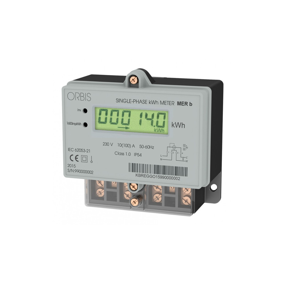 Orbis contatore di energia attiva monofase 230V da parete MER B LCD. Il contatore di energia permette di controllare il consumo di energia in una determinata installazione. Utilizzabile per misurare l’energia consumata da una pompa di calore oppure come contatore di sottrazione.