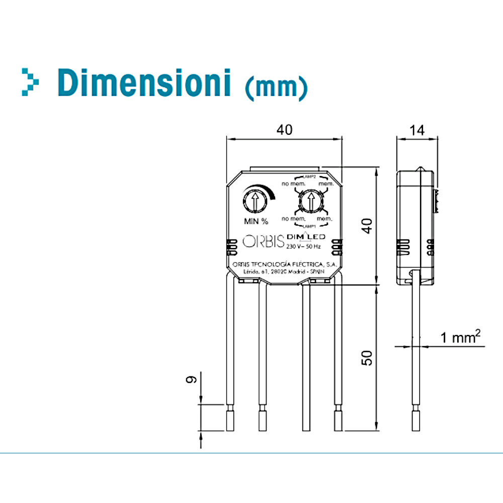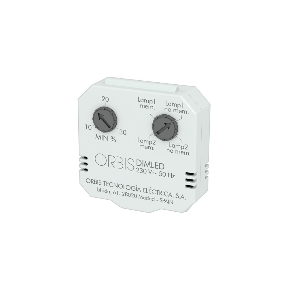Orbis Dimmer da retrofrutto adatto per il controllo dell’intensità luminosa delle lampada a incandescenza, alogene 230V, alogene 12V con trasformatore, lampade basso consumo e led dimmerabili. Azionabile da 2 pulsanti esterni, con i quali è possibile regolare l’illuminazione. Le dimensioni estremamente compatte del dispositivo facilitano l’installazione, all’interno delle scatole da incasso 503E, abbinato ad un qualsiasi pulsante.