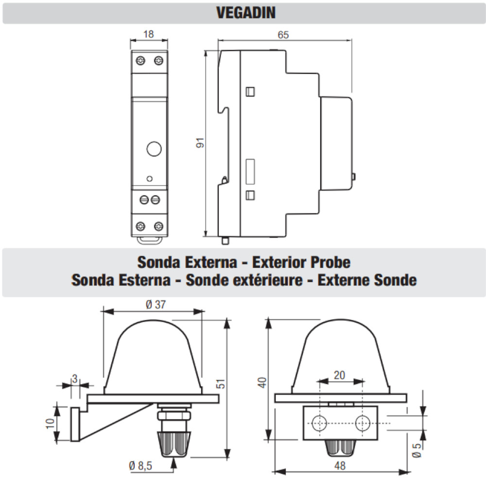 L’Interruttore crepuscolare Vegadin della Orbis ha un modulo 230V 16A con sonda esterna posizionabile a distanza compresa. Utilizzato per l’accensione di lampade in automatico in base al livello di luminosità ambientale. Montaggio su guida din.