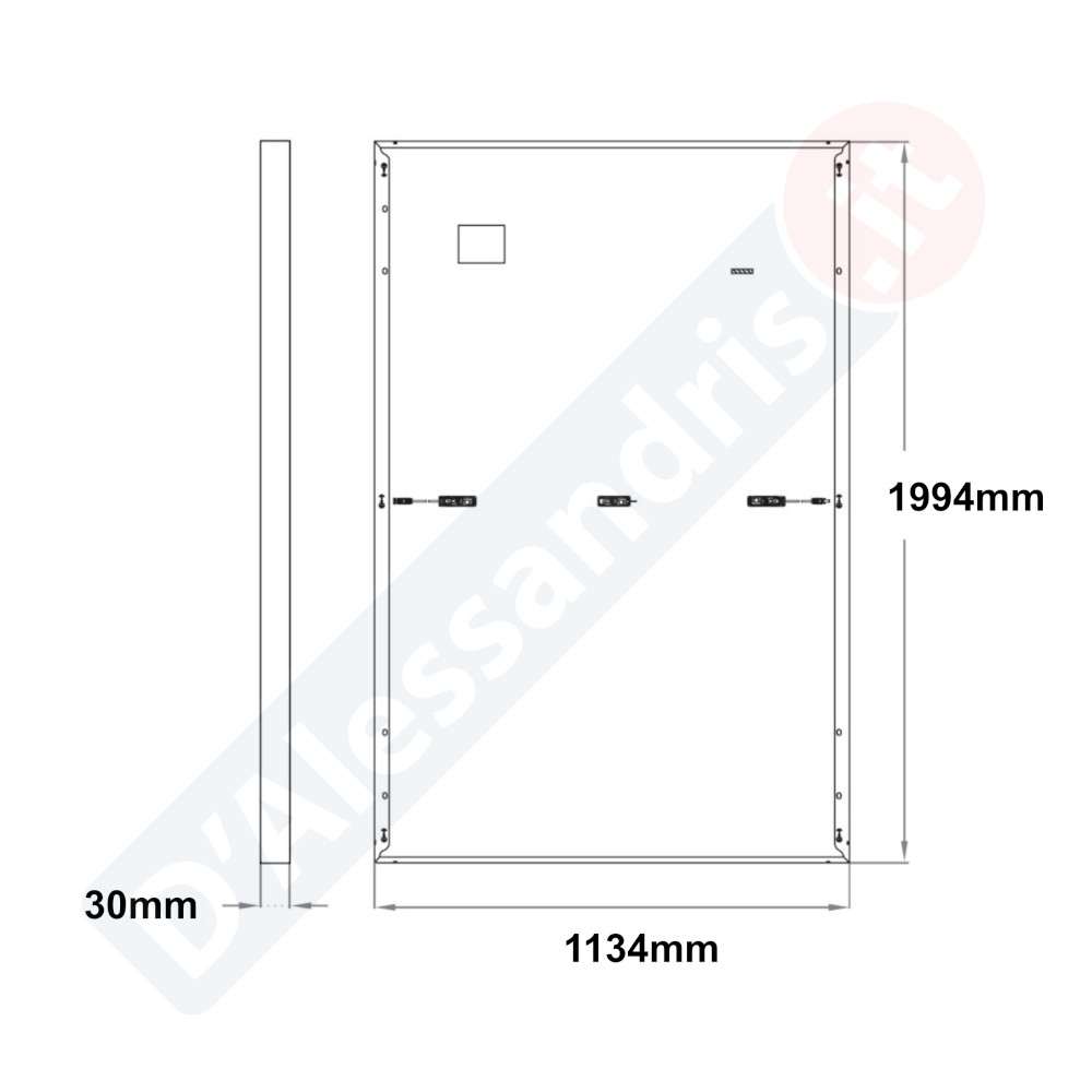Il modulo ha un altezza di 1994mm, una larghezza di 1134mm e uno spessore di 30mm, mentre il suo peso è di 27kg. Ha una protezione IP68, quindi garantito anche in ambienti difficili ed estremi. La manutenzione consiste nella rimozione dello sporco sulla superficie della piastra, per permettere ai raggi di sole di penetrare all’interno.