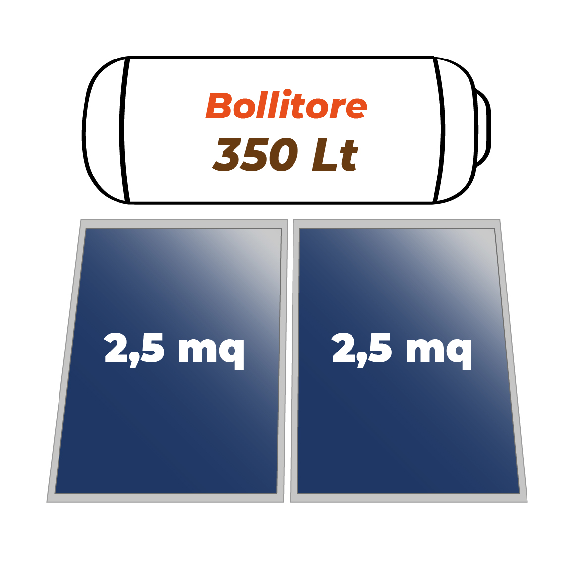 Il boiler porcellanato da 350 litri è a serpentina. All’interno della serpentina circola il fluido termovettore riscaldato dal pannello solare. In questo modo, il calore viene trasferito in modo estremamente veloce ed efficiente. Quindi, l’acqua si scalda più velocemente, riducendo i tempi di attesa ed aumentando il comfort. Inoltre, il serbatoio è coibentato e mantiene quindi l’acqua sempre calda.