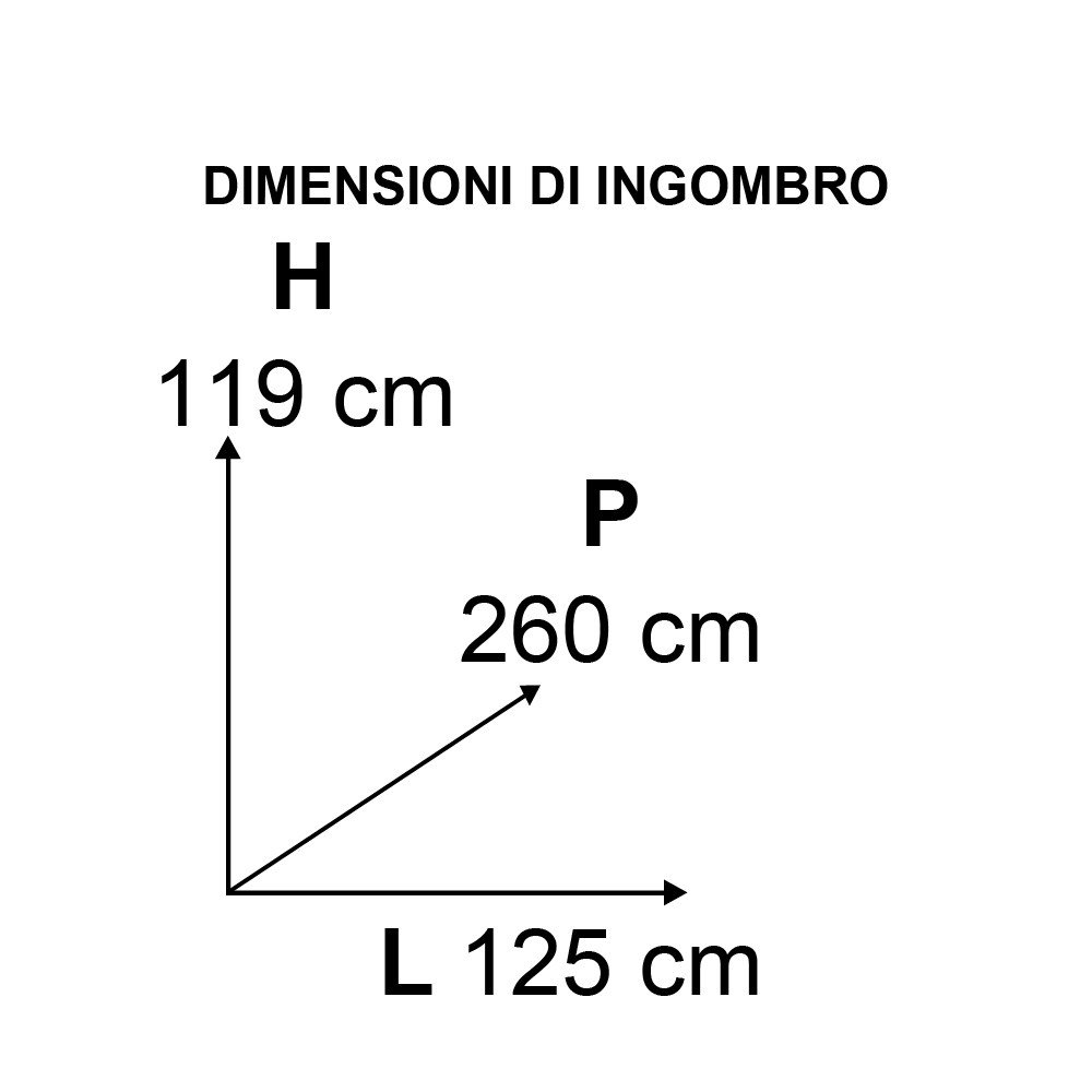 | Dimensioni Ingombro | H 119 cm x L 125 cm x P 260 cm |