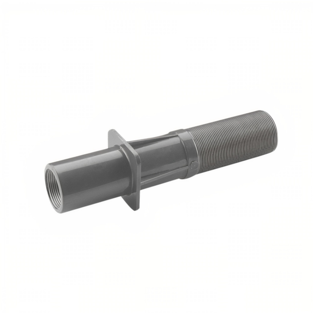 Passante da muro per piscina, adatto al montaggio di bocchette o prese a spazzola. Il passante da muro è realizzato in ABS, ed è di colore grigio. È indicato per il montaggio di un faretto o proiettore LED o una bocchetta con conseguente foro della parete della vasca. Il passante è lungo 300mm, è dotato di un foro superiore da 2″ per il montaggio degli accessori, e di una filettatura alla base da 2″ con un foro interno di 50mm. Grazie alla particolare conformazione consente di rimanere ben ancorato nella parete della vostra piscina, evitando che il liner si gonfi e che perda. Eccellente per la realizzazione di una piscina funzionale ed efficiente.