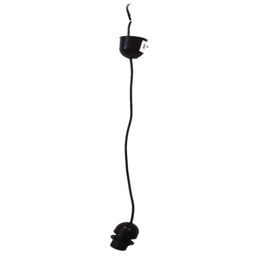 Pendel nero 80cm con portalampade attacco E27 e rosone a soffitto per la copertura dei collegamenti elettrici. Il portalampade ha una ghiera per il fissaggio del piatto. Altezza regolabile in base alle proprie esigenze.