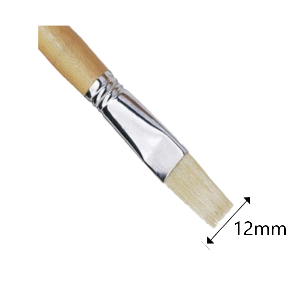 Pennello Eterna s.579 punta piatta, manico lungo in legno verniciato trasparente, setola bionda. Misura setola 12mm.