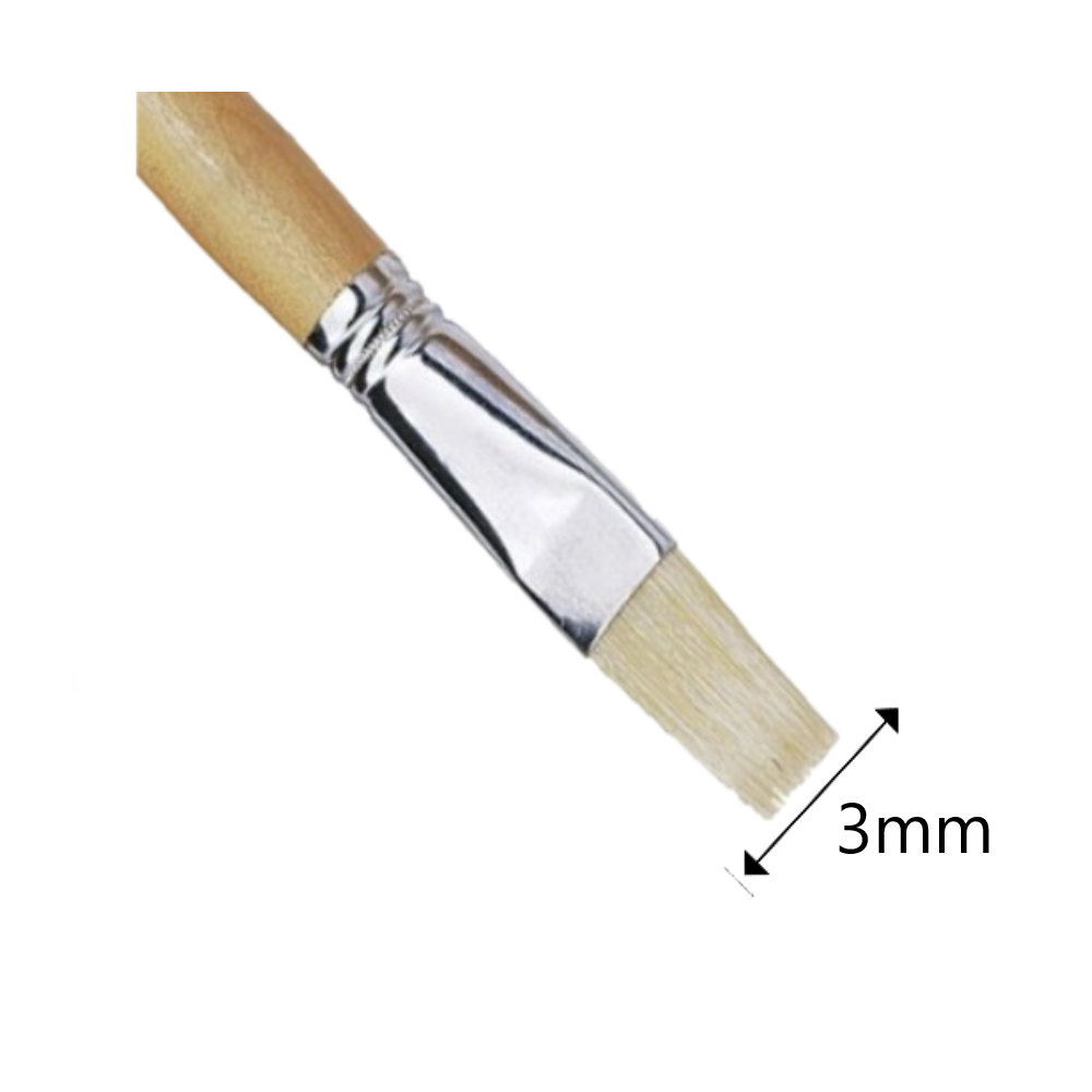 Pennello Eterna s.579 punta piatta, manico lungo in legno verniciato trasparente, setola bionda. Misura setola 3mm.
