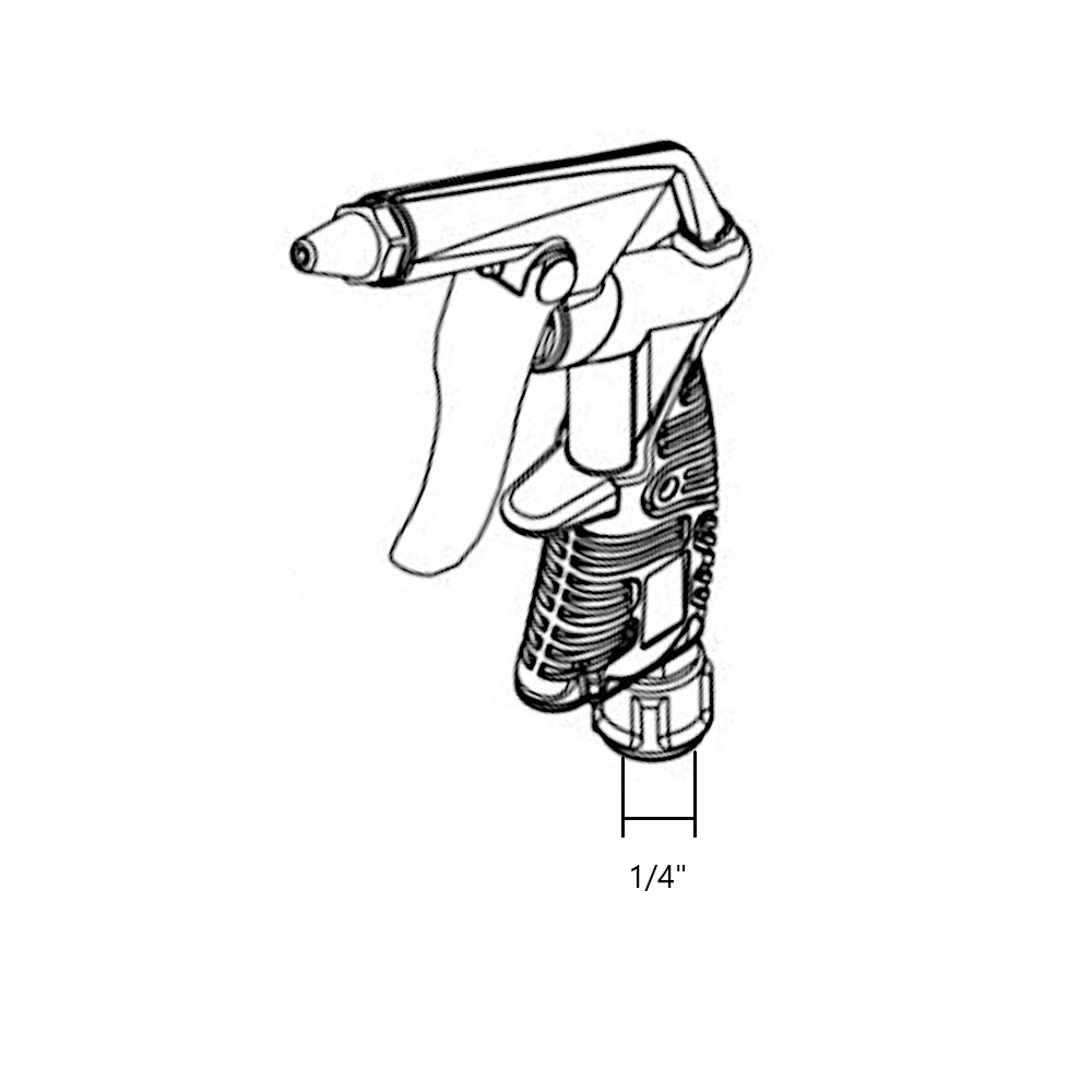 Pistola di soffiaggio per aria compressa con canna corta, realizzata in alluminio con finitura sabbiata e nichelato, con chiusura a baionetta con attacco da 1/4″. E’ dottata di una sua valvola aria ad apertura progressiva che permette di dosare l’aria in uscita, agendo direttamente sull’apposita leva. Il raccordo con dado è usato per la connessione e sconnessione dei tubi di un circuito pneumatico per aria compressa, con un singolo movimento manuale senza l’utilizzo di utensili, garantendo velocità e flessibilità nella messa in opera, riducendo cosi i tempi di fermo macchina.