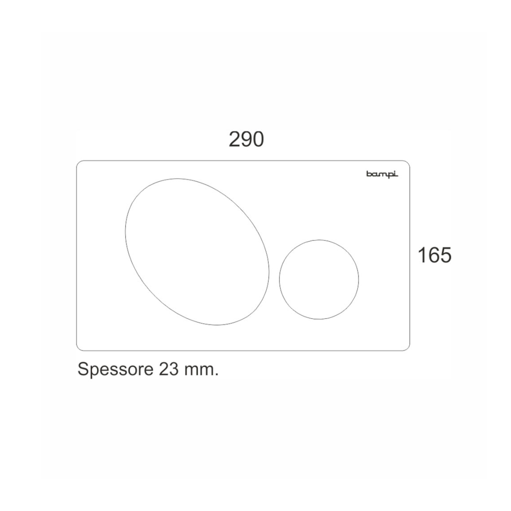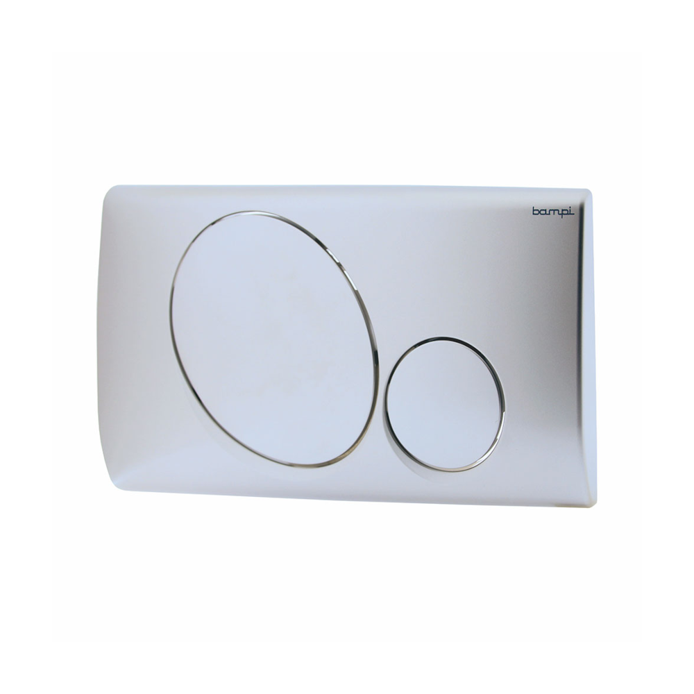 La placca di comando meccanica della serie Vega di Bampi, è un elemento essenziale per completare al meglio un ambiente bagno funzionale ed un sistema di scarico efficiente. La placca Vega è destinata per l’utilizzo in ambienti privati e semipubblici. Inoltre è realizzata con un funzionamento di risciacquo meccanico a due quantità. Difatti si presenta con un tasto rotondo, il quale rappresenta un risciacquo parziale, mentre il tasto ovale indica un risciacquo totale. La placca Bampi è compatibile con la cassetta di risciacquo Andromeda Plus. La sua installazione prevede un montaggio frontale.