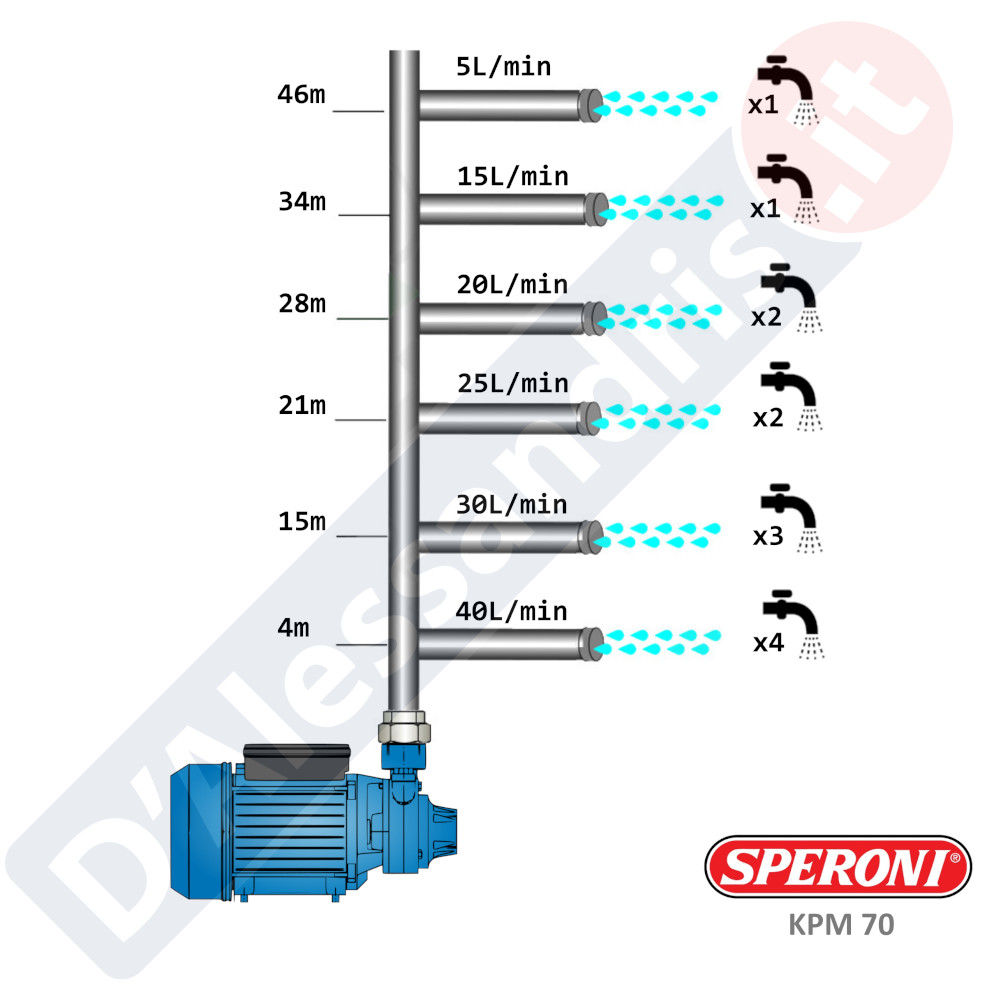 Il suo sistema a girante periferica, permette il sollevamento ed il trasferimento di acqua, generando pressioni elevate con una portata ridotta. Difatti il movimento della girante, aumenta la pressione dell’acqua pompata, in grado di soddisfare diverse applicazioni di utilizzo.