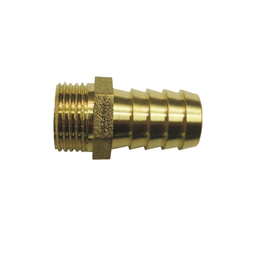 Raccordo portagomma di entrata per tubo gas METANO maschio in ottone giallo da Ø 1/2″ x 14 mm.