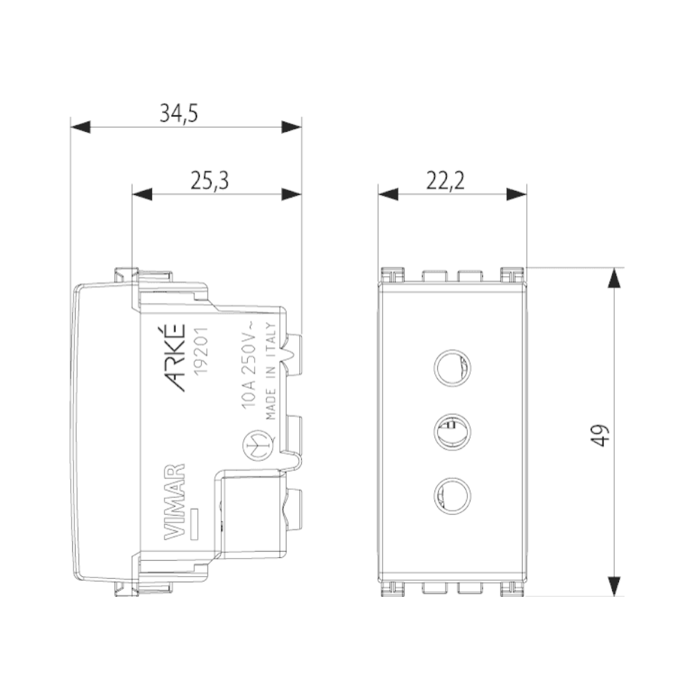 Presa 2P+T 10A grigio Arke Vimar