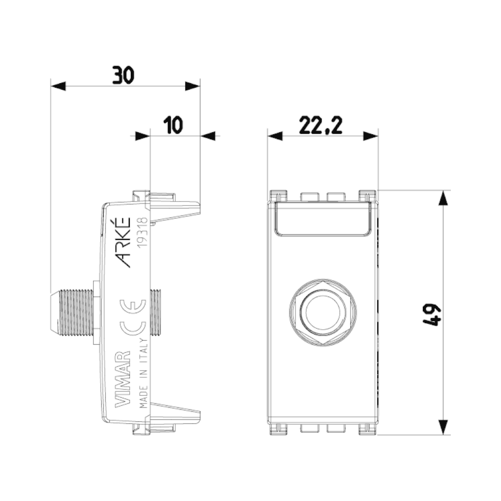 Presa coassiale F bianca Arke Vimar viene utilizzata per collegare i cavi coassiali ai dispositivi televisivi, come TV e decoder. Il pulsante ha uno stile semplice e lineare grazie alle sue forme geometriche ben definite e squadrate. Questo interruttore della serie Arke si adatta alla perfezione a tutti gli ambienti apparendo un tutt’uno con essi. Il montaggio è facile, ma siccome prevede dei collegamenti diretti con la rete elettrica, deve essere eseguito da un professionista. Il Presa coassiale F bianca Arke Vimar è piccolo e compatto ed ha dimensioni: 3 x 2,2 x 4,9 cm.