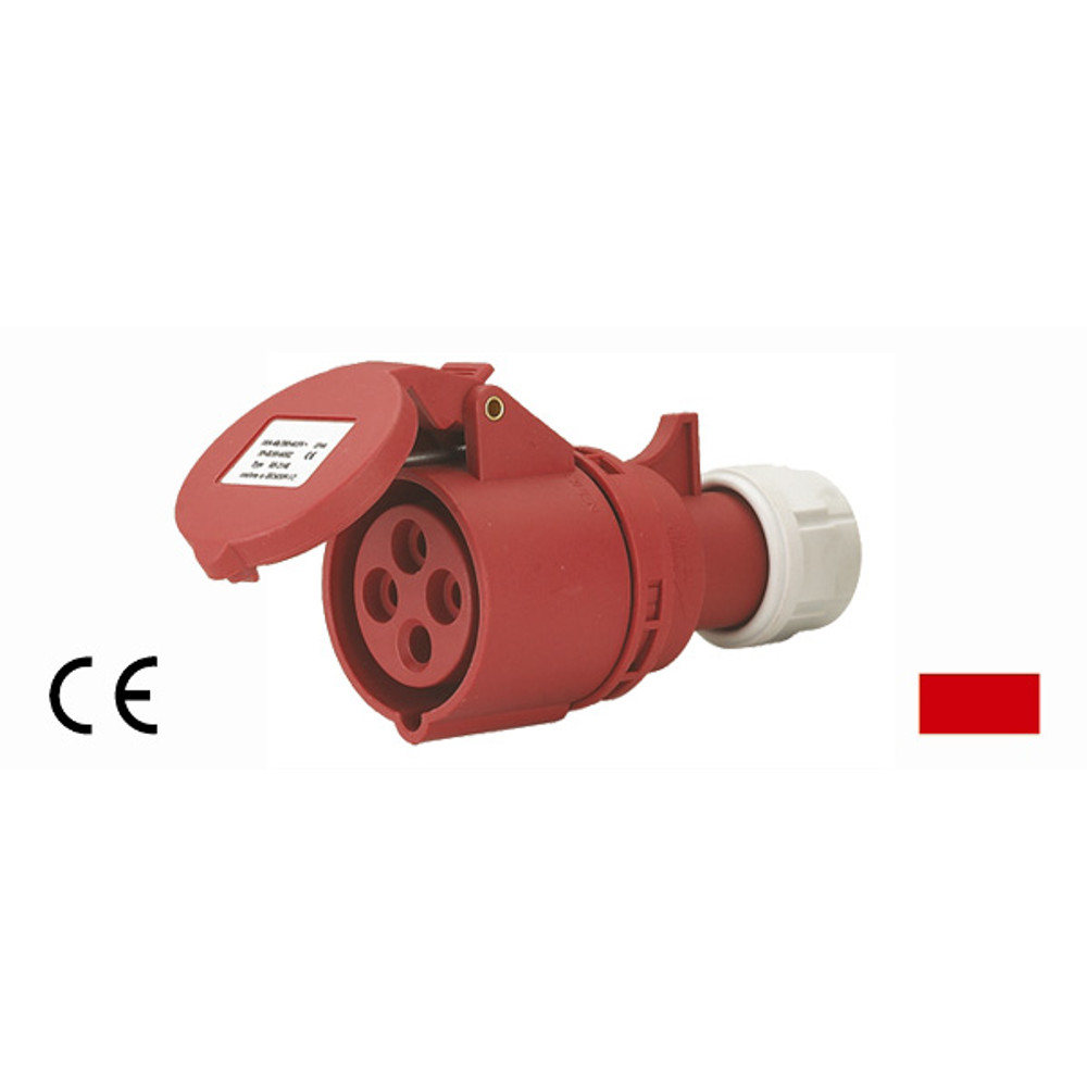 Presa mobile industriale diritta 3P+T 16A 380V trifase IP44. Utilizzata per il cablaggio di prolunghe, utensili e macchine industriali.