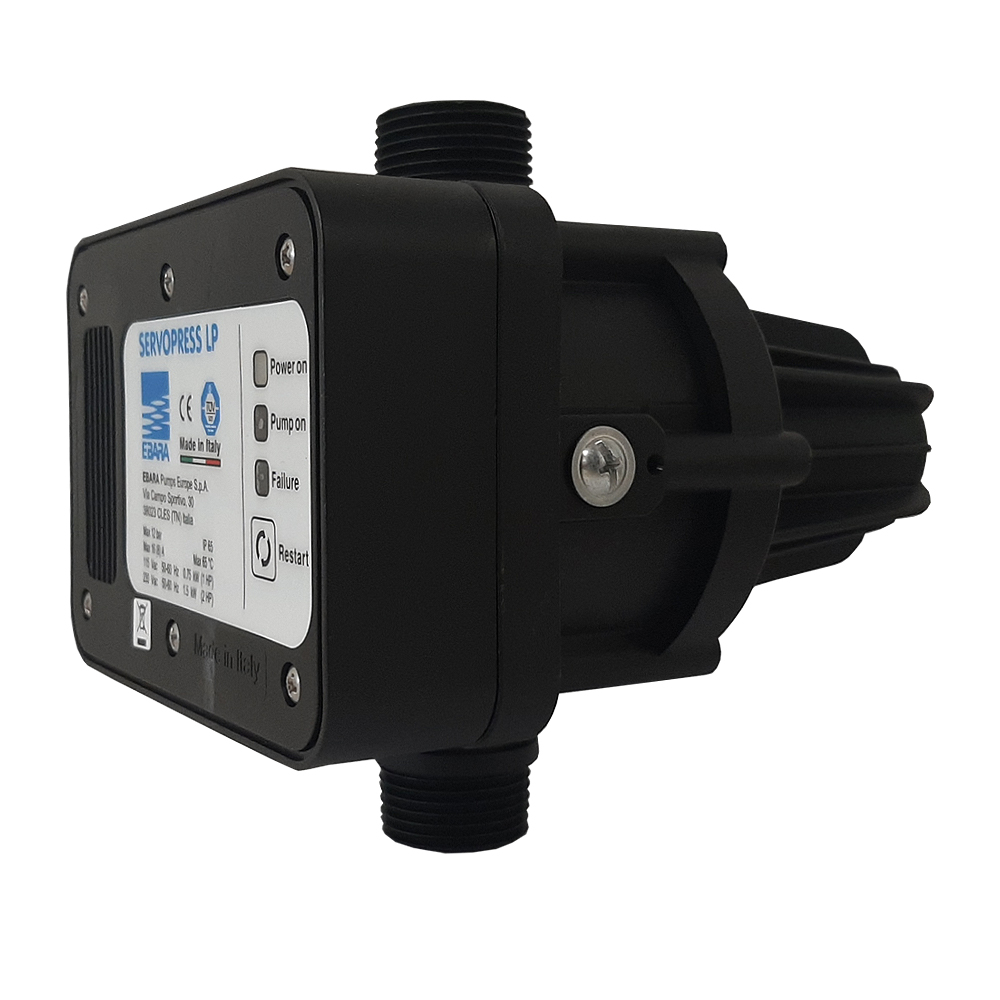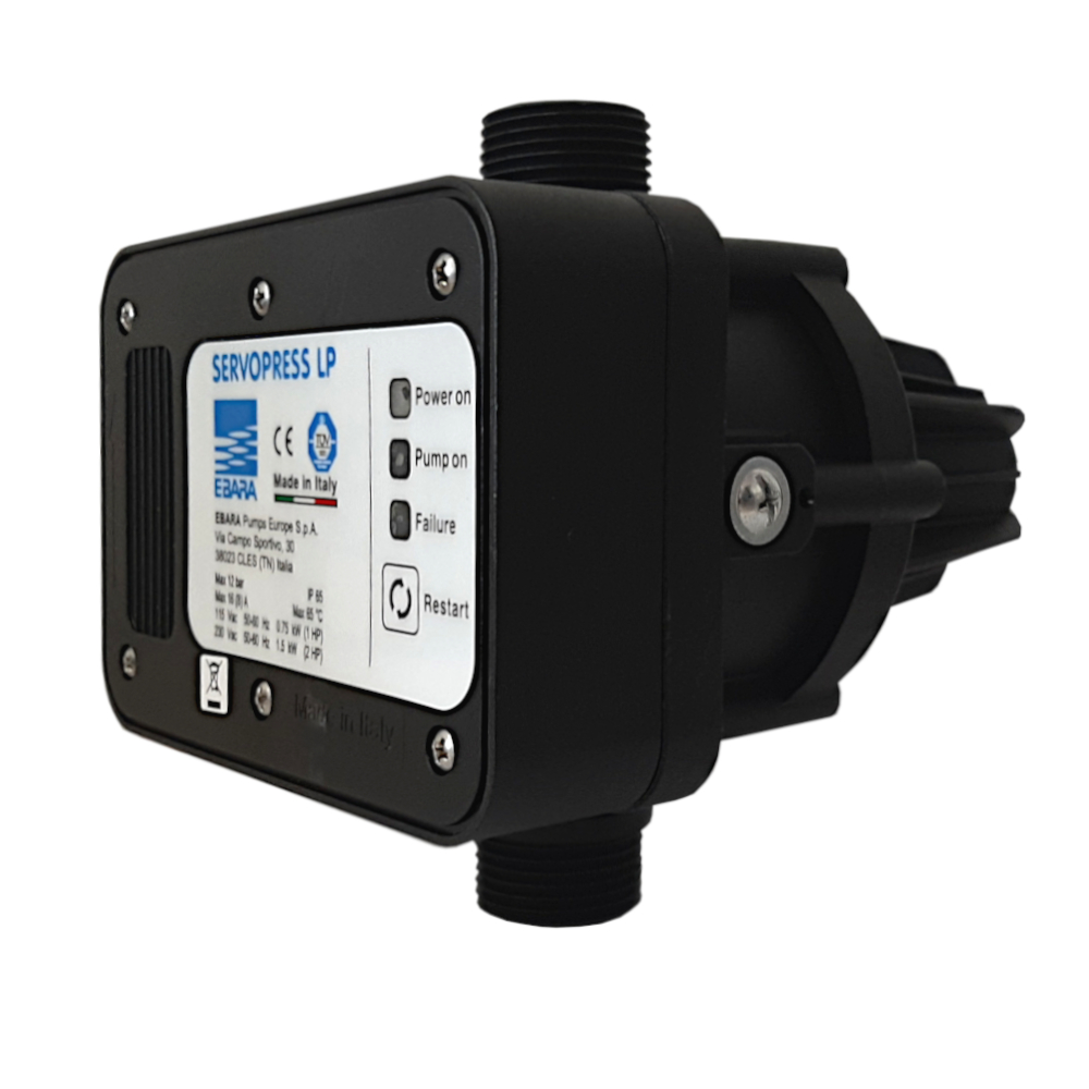 Il presscontrol ServoPress serve ad accendere e spegnere l’elettropompa in maniera del tutto automatica. Il PressControl garantisce un ottimo controllo automatico elettronico della vostra elettropompa fino a 2,00hp. Ebara presenta questo prodotto come una delle migliori soluzioni per controllare la pressione dell’acqua emanata grazie al loro sistema Made In Italy. La taratura del presscontrol è di 2,2 bar, questo valore determina la partenza automatica della pompa mantenendo in pressione l’impianto.