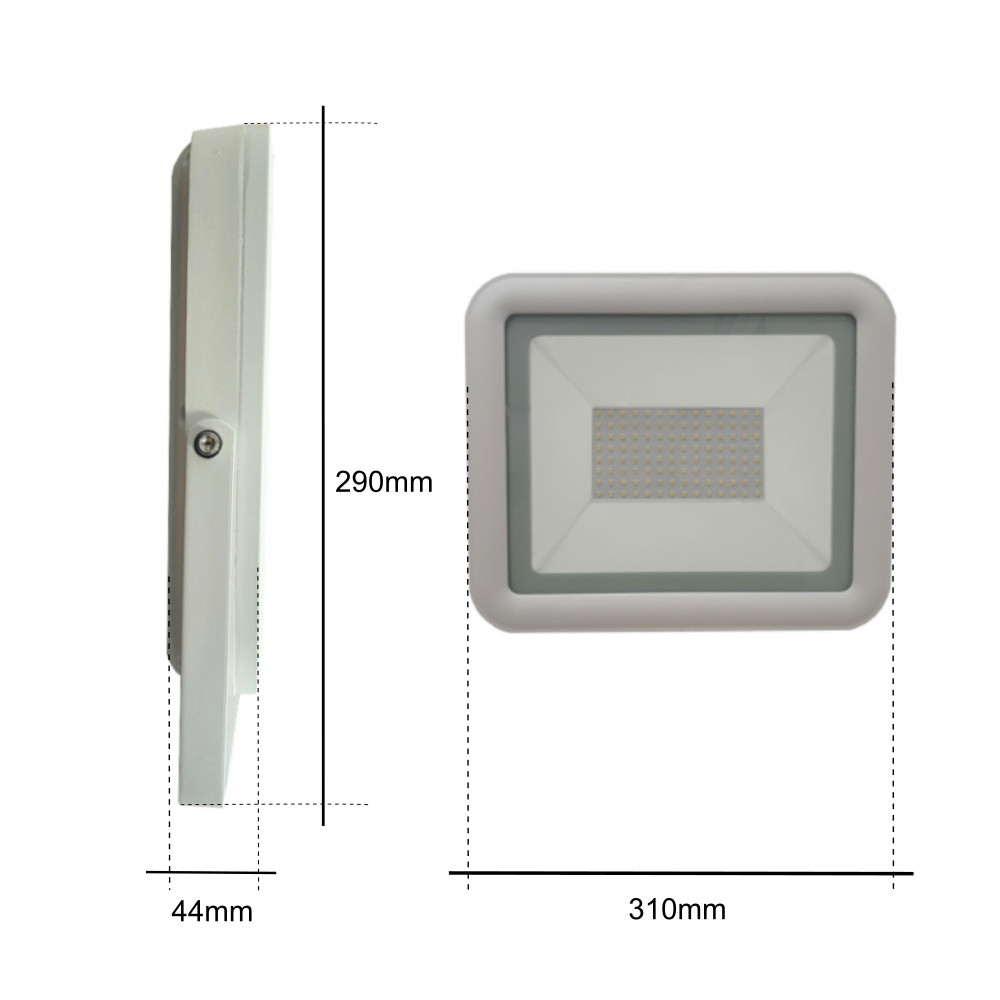 Faro proiettore LED in grado di illuminare i vostri ambienti con la sua luce bianca fredda. Faretto dotato di protezione IP65, quindi adatto ad essere installato in ambienti interni ed esterni. Grazie alla staffa regolabile può essere montato in qualsiasi angolazione. Il proiettore sfruttando la tecnologia a LED assorbe solo 100 W ma sviluppa ben 900 W in relazione alla vecchia tecnologia alogena, garantendo un grande risparmio in bolletta e rappresentando una scelta anche ecologica. In secondo luogo per via della tecnologia a LED, permette di raggiungere fino a 30000 ore di funzionamento. Inoltre il faro è costruito in acciaio, ed ha una placca frontale in vetro trasparente. Per di più è dotato di un dissipatore di calore esterno, che evita che il proiettore si surriscaldi. Il proiettore grazie agli elevati lumen prodotti, rappresenta la scelta adatta per illuminare insegne, cartelli, o qualsiasi luogo dove è richiesta un’ illuminazione uniforme. La luce prodotta è di tipo bianco freddo, con temperatura colore di 5500 – 6000 K, ideale per illuminare i vostri ambienti in modo uniforme ed omogeneo. In aggiunta il fascio luminoso prodotto ha un’ ampiezza di ben 270° ed un’ intensità di 8000 lm. I dati tecnici del faro possono essere soggetti a leggere variazioni