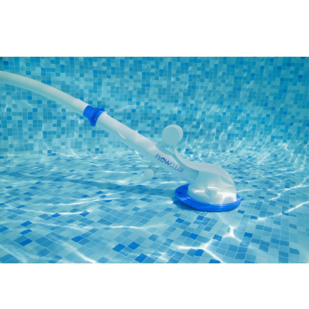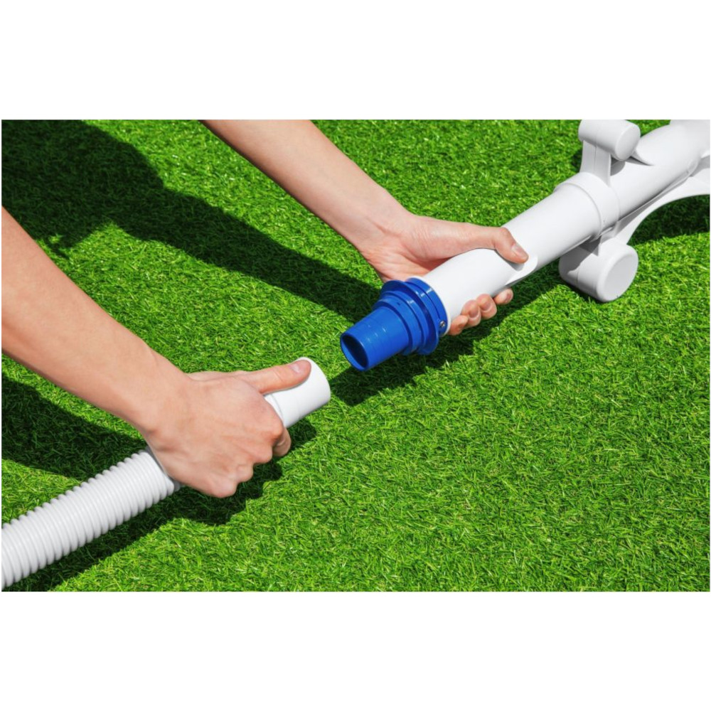 L’aspiratore automatico Acquasweeper è un accessorio essenziale, per pulire il fondo della tua piscina, in modo pratico ed efficace. L’aspiratore si collega direttamente alla pompa di filtraggio e aspira a fondo, detriti ed impurità, raccogliendoli nel sacco riutilizzabile. Inoltre è compatibile con pompe di filtraggio con portata pari o superiore a 3,785 L/h e con pompe dotate di filtro a sabbia con portata di 3,028 L/h. E’ ideale per le piscine fuori terra, con un diametro massimo di Ø670cm.