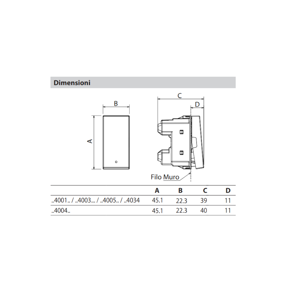 Il dispositivo ha indice da penetrazione da corpi solidi o liquidi IP40, una custodia in policarbonato inoltre l’indice da prova d’urto è pari a IK04. Si consiglia di pulire la superficie con un panno, senza usare acetone, smacchiatori o tricloroetilene. Inoltre è consigliabile verificare sempre l’utilizzo di prodotti speciali per la pulizia del dispositivo.