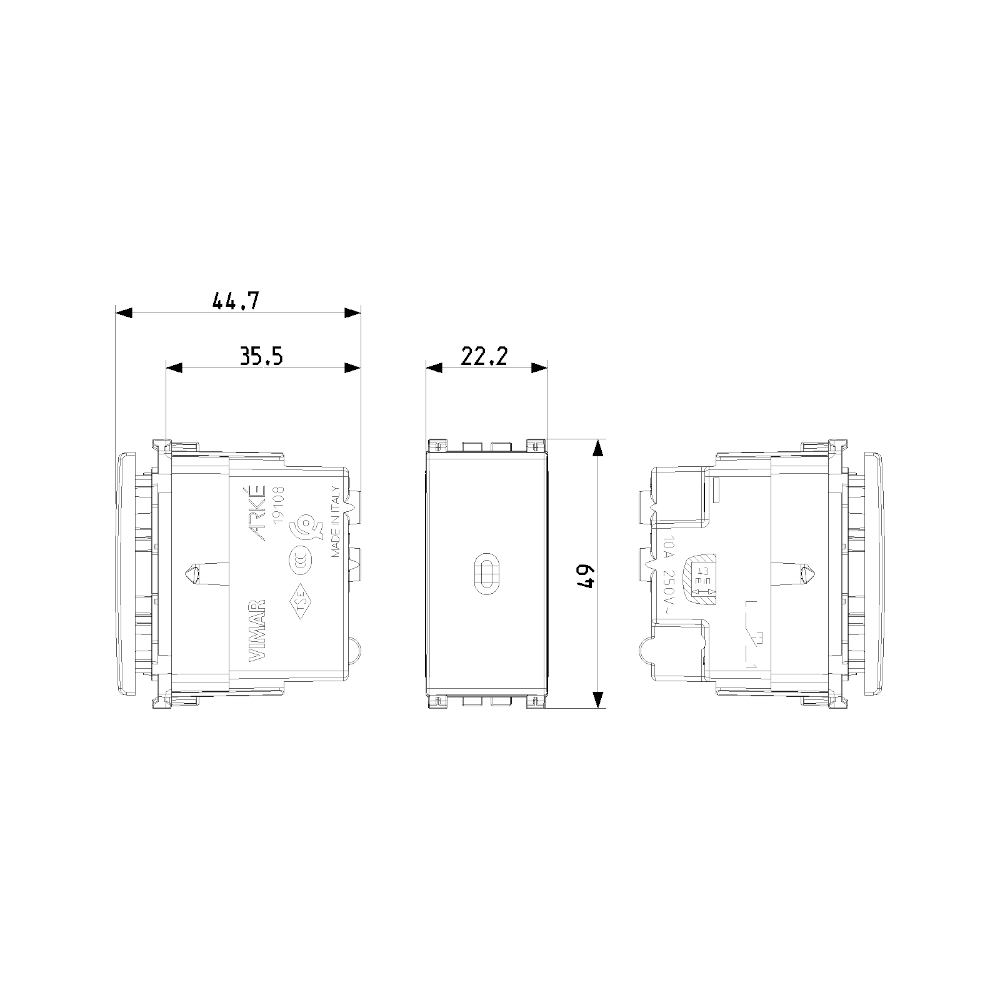 Pulsante Assiale 1P NO Arke Vimar si muove perpendicolarmente alla parete e torna sempre in posizione iniziale rimanendo sempre in linea con la placca. Il pulsante ha uno stile semplice e lineare grazie alle sue forme geometriche ben definite e squadrate. Questo interruttore della serie Arke si adatta alla perfezione a tutti gli ambienti apparendo un tutt’uno con essi. Il montaggio è facile, ma siccome prevede dei collegamenti diretti con la rete elettrica, deve essere eseguito da un professionista. Il Pulsante Assiale 1P NO Arke Vimar è piccolo e compatto ed ha dimensioni: 4,5 x 2,2 x 4,9 cm.