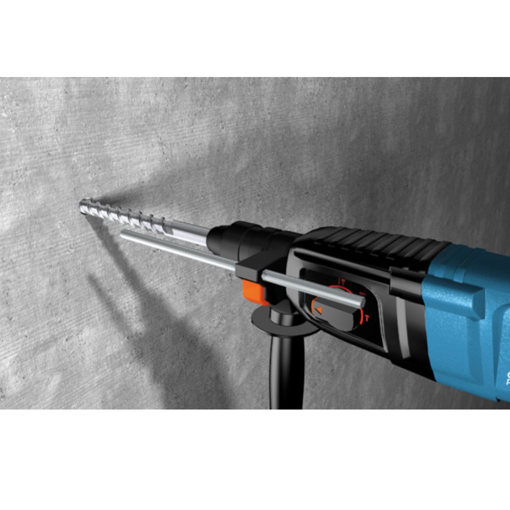Punta in acciaio per martelli perforatori a 2 taglienti con attacco SDS Plus. La geometria ottimizzata della punta permette un avanzamento rapido della foratura, ridotta usura e rottura, e minor sforzo. La punta di centraggio permette una foratura facile e precisa ed evita lo slittamento sulle superfici lisce. Le 3 “Breakers Power” sulla testa della punta hanno un “effetto polverizzante”. Esse creano microfratture nel materiale e consentono una velocità di perforazione notevolmente migliorata. Gli smussi di rinforzo più grandi (+35%) garantiscono che la punta agisca nel miglior modo possibile quando colpisce le barre di armatura nel calcestruzzo. Questo riduce notevolmente il rischio di problemi causati da inceppamenti della punta.