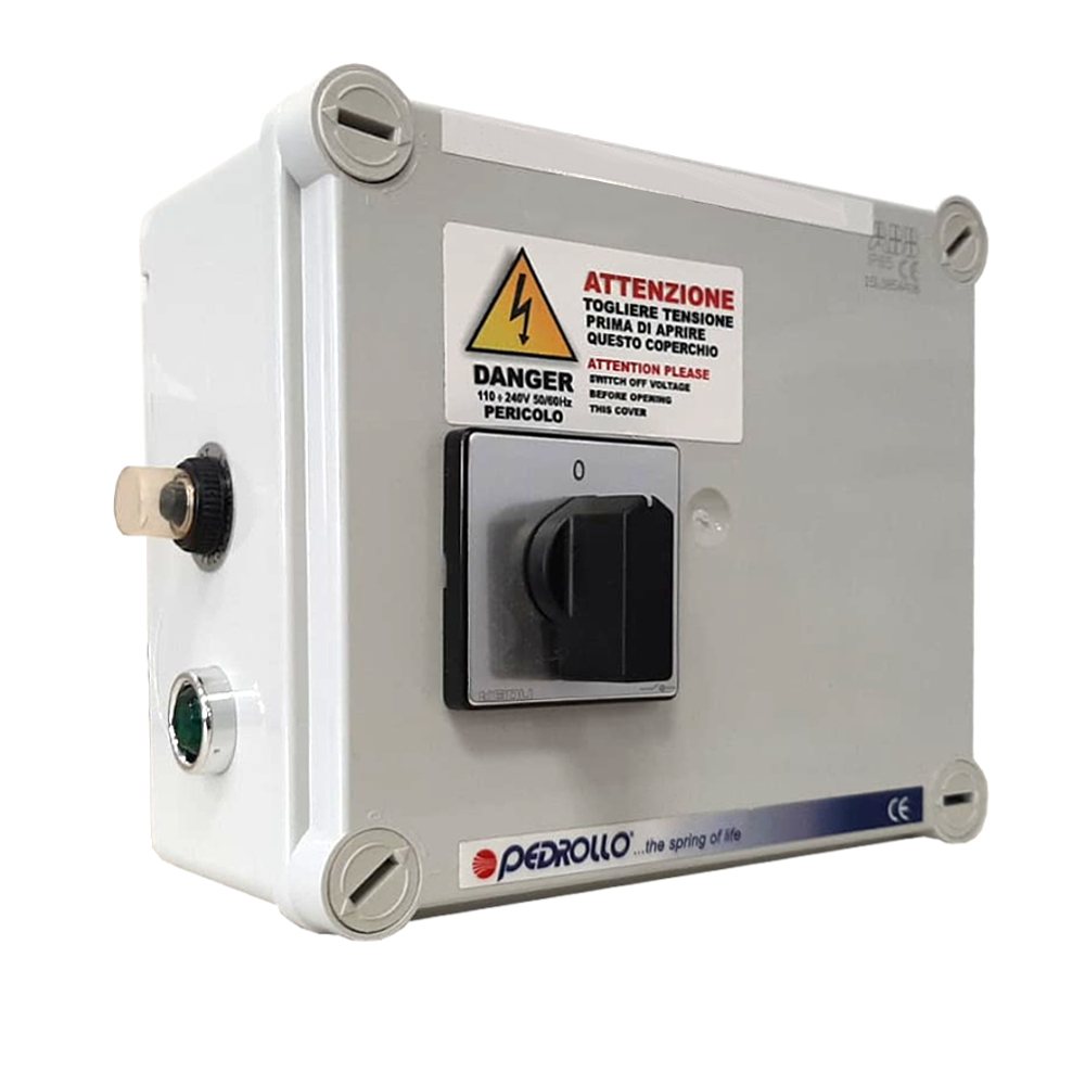 Quadro elettrico realizzato dalla rinomata casa Pedrollo, studiato per l’avviamento e la protezione delle pompe sommerse monofase da 4 pollici.