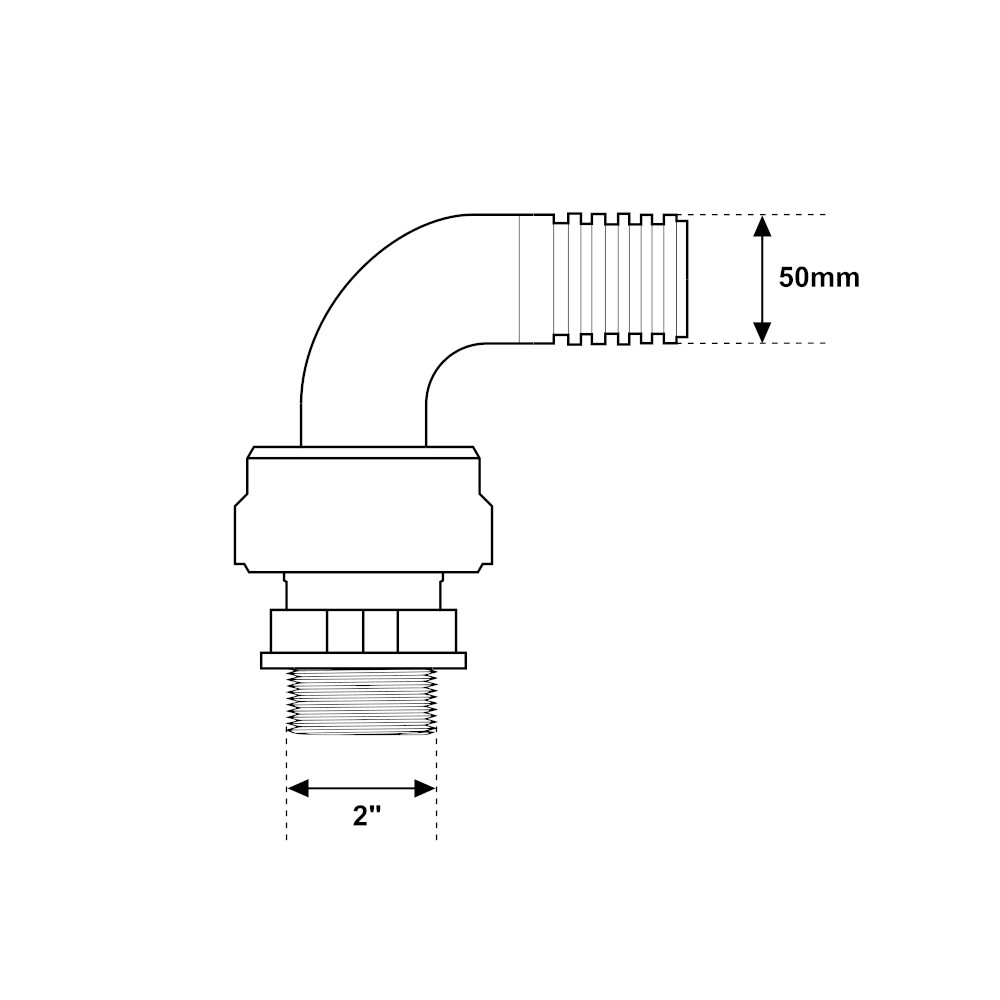 Raccordo curvo a 3 pezzi, adatto al collegamento e al fissaggio di tubi in gomma. Il raccordo portagomma è la scelta adatta per il collegamento di tubature di pompe per acque sia sporche che chiare. Adatto inoltre al trasferimento di acqua potabile. La giunzione è realizzata in nylon, un materiale che costituisce un’ottima alternativa ai raccordi in ottone. Il nylon infatti vanta un’elevata resistenza alla trazione, alla compressione, e alla flessione. In aggiunta questi raccordi sono in grado di assicurare un’alta durata nel tempo. I raccordi in nylon sono per di più resistenti alla corrosione e agli agenti atmosferici. Il raccordo curvo a 3 pezzi si presenta con un attacco a pressione con diametro da 50mm, ed un attacco filettato maschio da 2″. Grazie alla facilità d’uso e di montaggio, i raccordi in nylon rappresentano un’ottima scelta per la realizzazione di sistemi idrici, circuiti di irrigazione, o impianti di trasporto di acqua potabile. Il raccordo curvo è disponibile in varie misure.