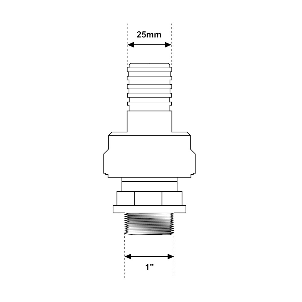 Raccordo a 3 pezzi dritto, adatto al collegamento e al fissaggio di tubi in gomma. Il raccordo portagomma è la scelta adatta per il collegamento di tubature di pompe per acque sia sporche che chiare. Adatto inoltre al trasferimento di acqua potabile. La giunzione è realizzata in nylon, un materiale che costituisce un’ottima alternativa ai raccordi in ottone. Il nylon infatti vanta un’elevata resistenza alla trazione, alla compressione, e alla flessione. In aggiunta questi raccordi sono in grado di assicurare un’alta durata nel tempo. I raccordi in nylon sono per di più resistenti alla corrosione e agli agenti atmosferici. Il raccordo a 3 pezzi si presenta con un attacco a pressione con diametro da 25mm, ed un attacco filettato maschio da 1″. Grazie alla facilità d’uso e di montaggio, i raccordi in nylon rappresentano un’ottima scelta per la realizzazione di sistemi idrici, circuiti di irrigazione, o impianti di trasporto di acqua potabile. Il raccordo dritto è disponibile in varie misure.