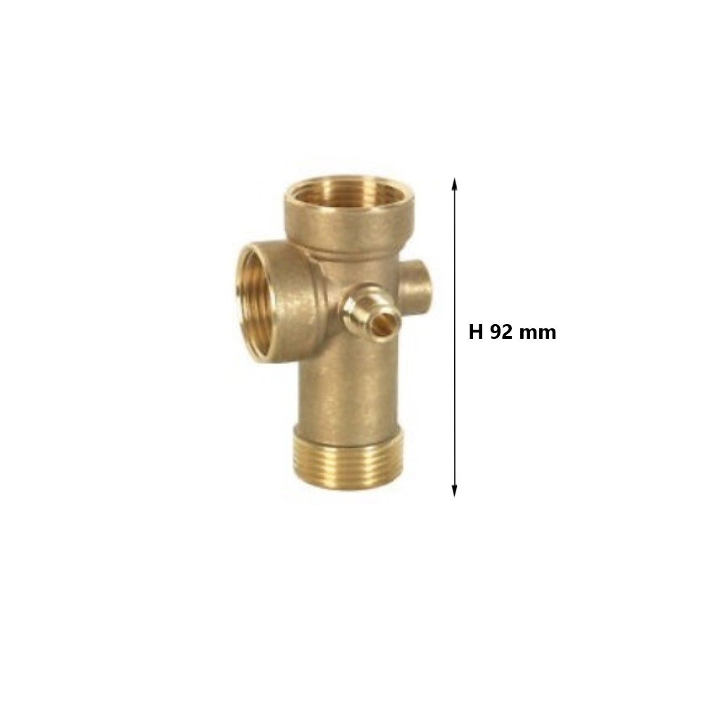 Raccordo a 5 vie prolungato in ottone creato per il collegamento di pompa, autoclave, manometro e pressostato. Altezza 92 mm. Filettatura 1″.
