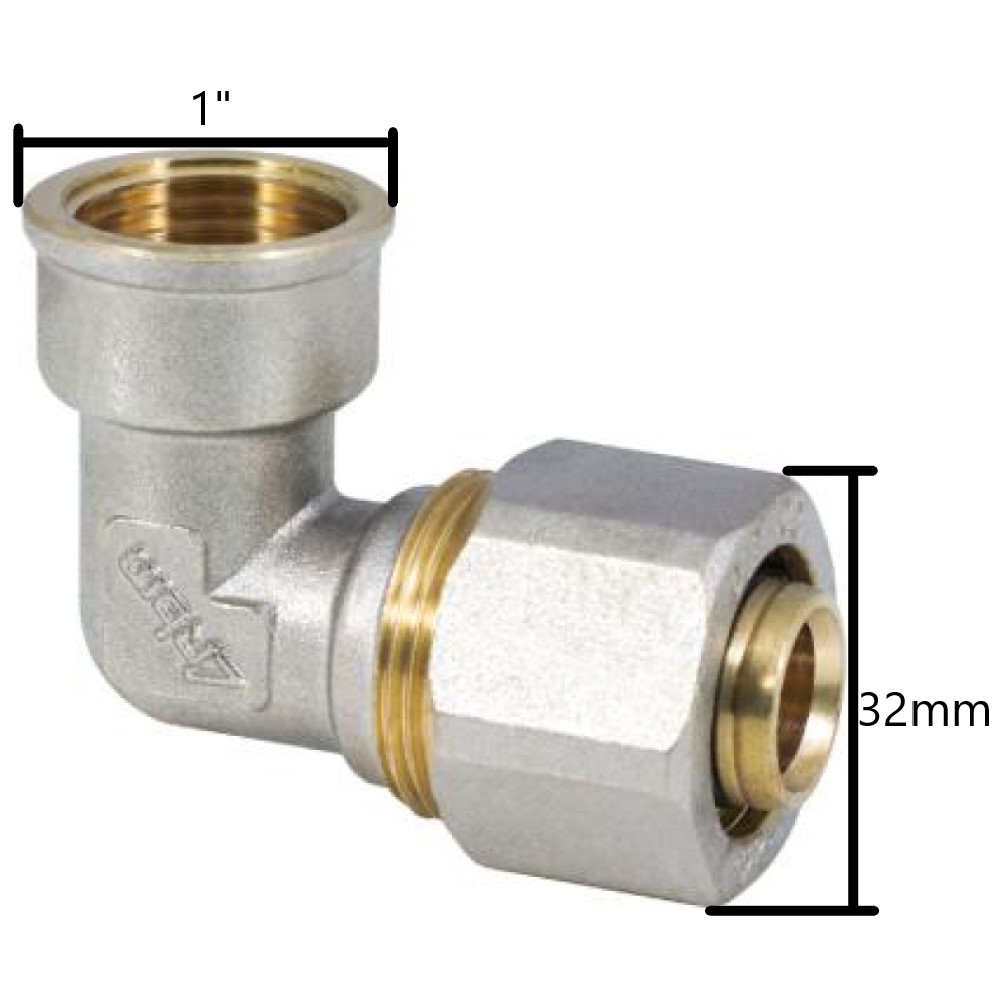 Il raccordo in ottone giallo pesante è utilizzato per collegare due tubi in impianti di riscaldamento, raffrescamento, impianti di acqua sia calda che fredda, aria compressa e in ogni installazione idraulica, commerciale, industriale, domestica ed agricola. Inoltre il raccordo in ottone giallo pesante è idoneo per il trasporto di acqua potabile. Il gomito è utilizzato per il collegamento di un tubo multistrato, inoltre permette il collegamento di tubi in polietilene. Il gomito ha un attacco femmina con filettatura 1″ da un lato, e un attacco femmina con diametro Ø32mm. La filettatura del raccordo, più lunga e più liscia, permette al tubo di scorrere meglio ed è conforme alla norma UNI EN ISO 228-1:2003.