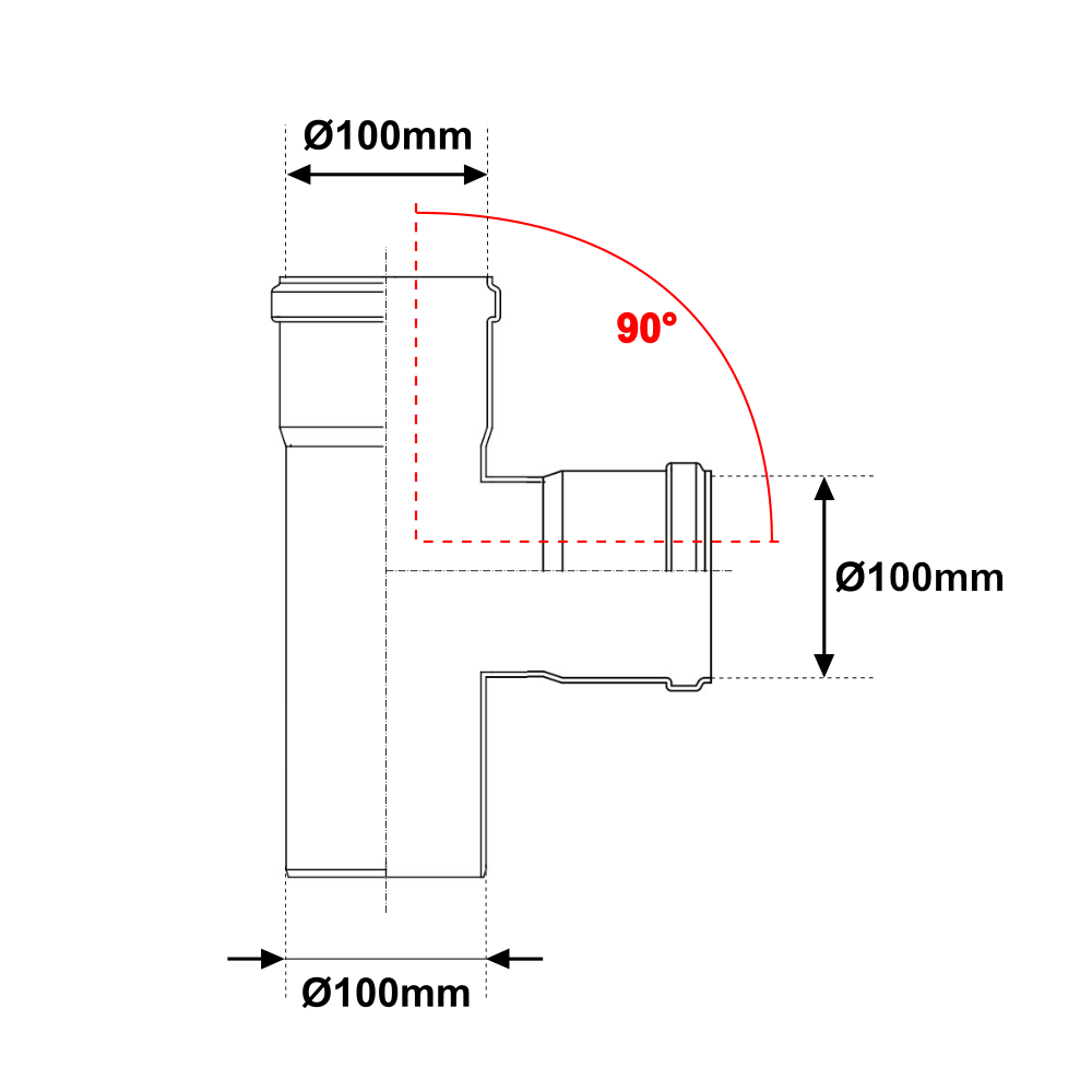 Il raccordo 90° a T in acciaio è adatto per effettuare la connessione tra condotto fumario e canale da fumo. Il raccordo ad angolo è munito di due attacchi maschio con diametro di 100mm e di un attacco femmina con diametro di 100mm. La tes sfrutta il sistema ad innesto con bicchiere con guarnizione idraulica, garantendo una tenuta perfetta e senza perdite.