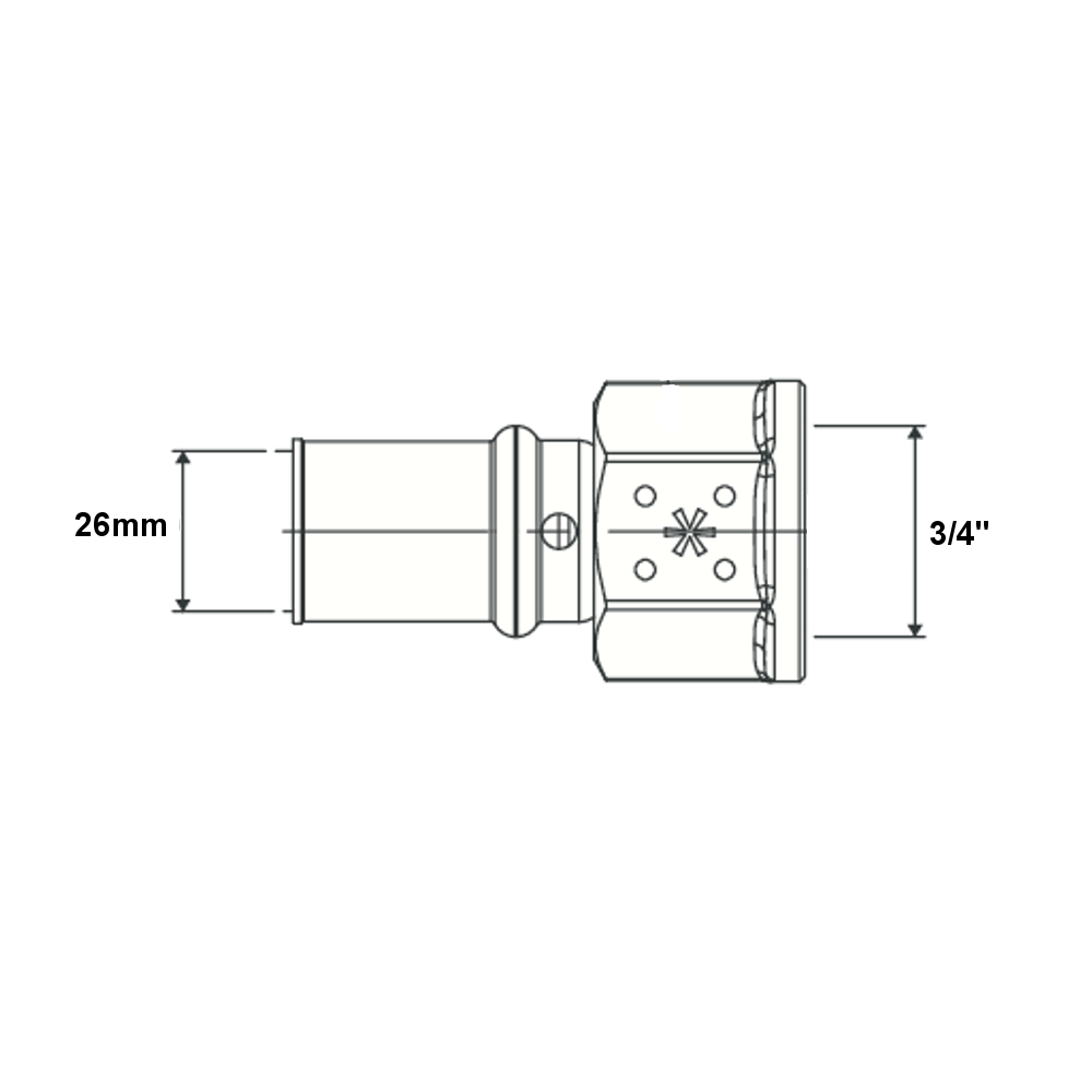 Il manicotto multistrato a pressare acqua è utilizzato per la realizzazione di impianti idrosanitari, impianti di riscaldamento ad alta temperatura, impianti di riscaldamento e raffrescamento a pavimento. Il manicotto ha un attacco femmina filettato con diametro Ø3/4″mm ed un attacco femmina con diametro Ø26mm. Il raccordo a pressare sfrutta l’utilizzo di tubature multistrato con spessore di 3mm.