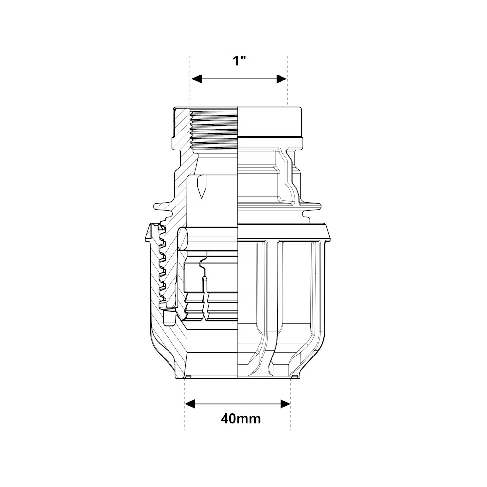 Raccordo dritto a compressione femmina 40mm – 1″ PN16