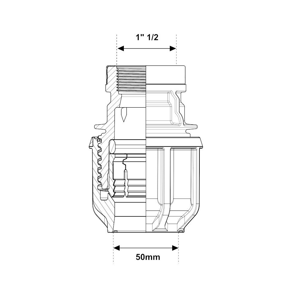 Raccordo dritto a compressione femmina 50mm – 1″ 1/2 PN16