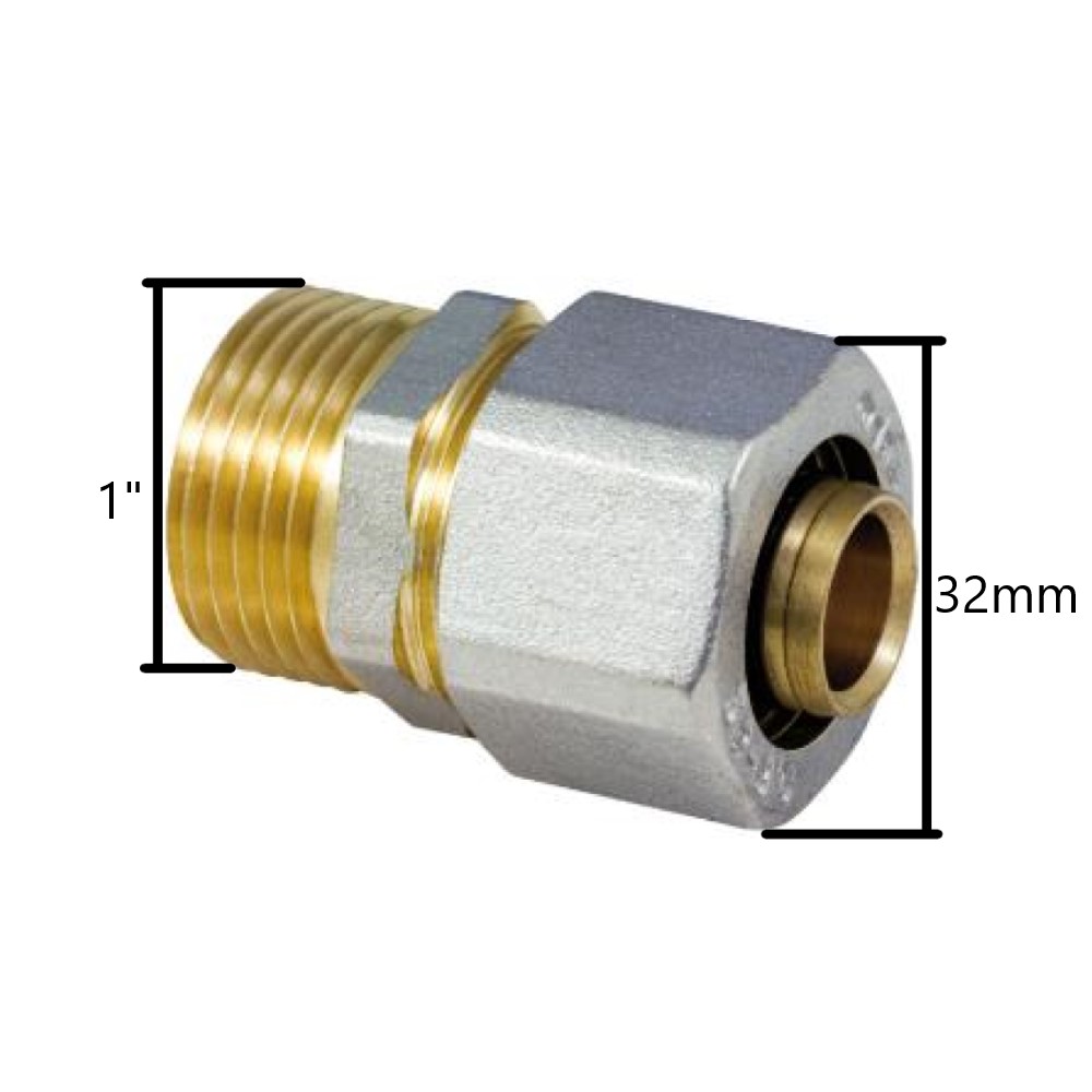 Raccordo Tubo Multistrato MM 1″-32mm Ottone Giallo Pesante