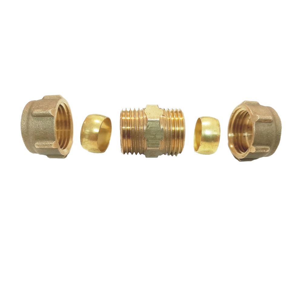 Il raccordo doppio a stringere per tubo in rame è utilizzato per la realizzazione di impianti idraulici e a gas, impianti di riscaldamento e di raffrescamento, impianti di acqua calda e fredda sanitaria. Idoneo ed affidabile per l’utilizzo con gas combustibili tipo metano e gas combustibili tipo metano e gpl, idrocarburi come benzina e gasolio. Il manicotto doppio è dotato di un’o-ring, il quale assicura la massima tenuta durante il funzionamento. Il manicotto è realizzato in ottone di alta qualità, il quale rende la struttura del raccordo, resistente e robusta, garantendo una lunga durata.