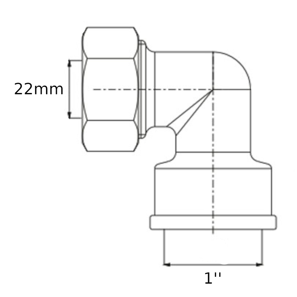 Gomito a stringere per tubo in rame FF 1”-Ø22mm