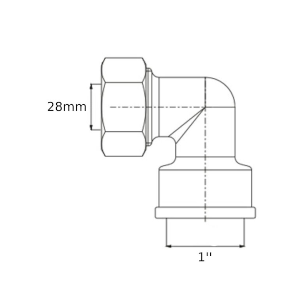 Gomito a stringere per tubo in rame FF 1”-Ø28mm