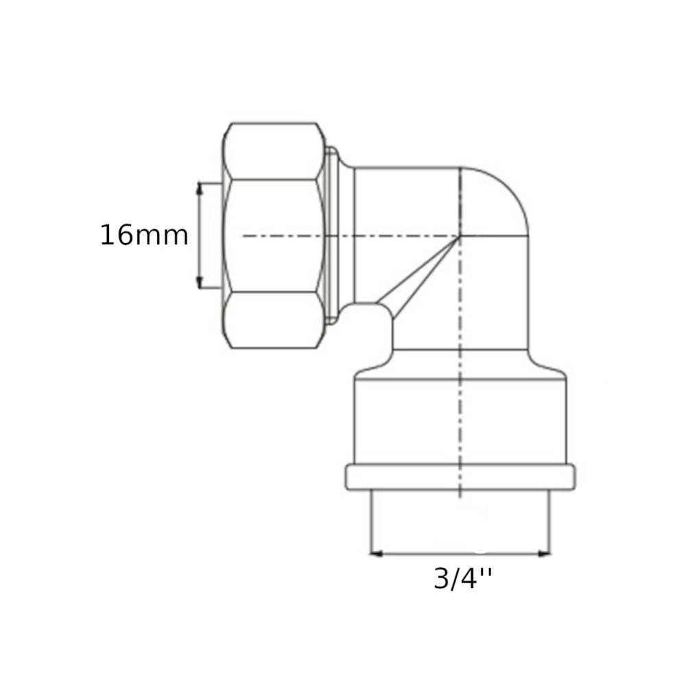 Gomito a stringere per tubo in rame FF 3/4”-Ø16mm