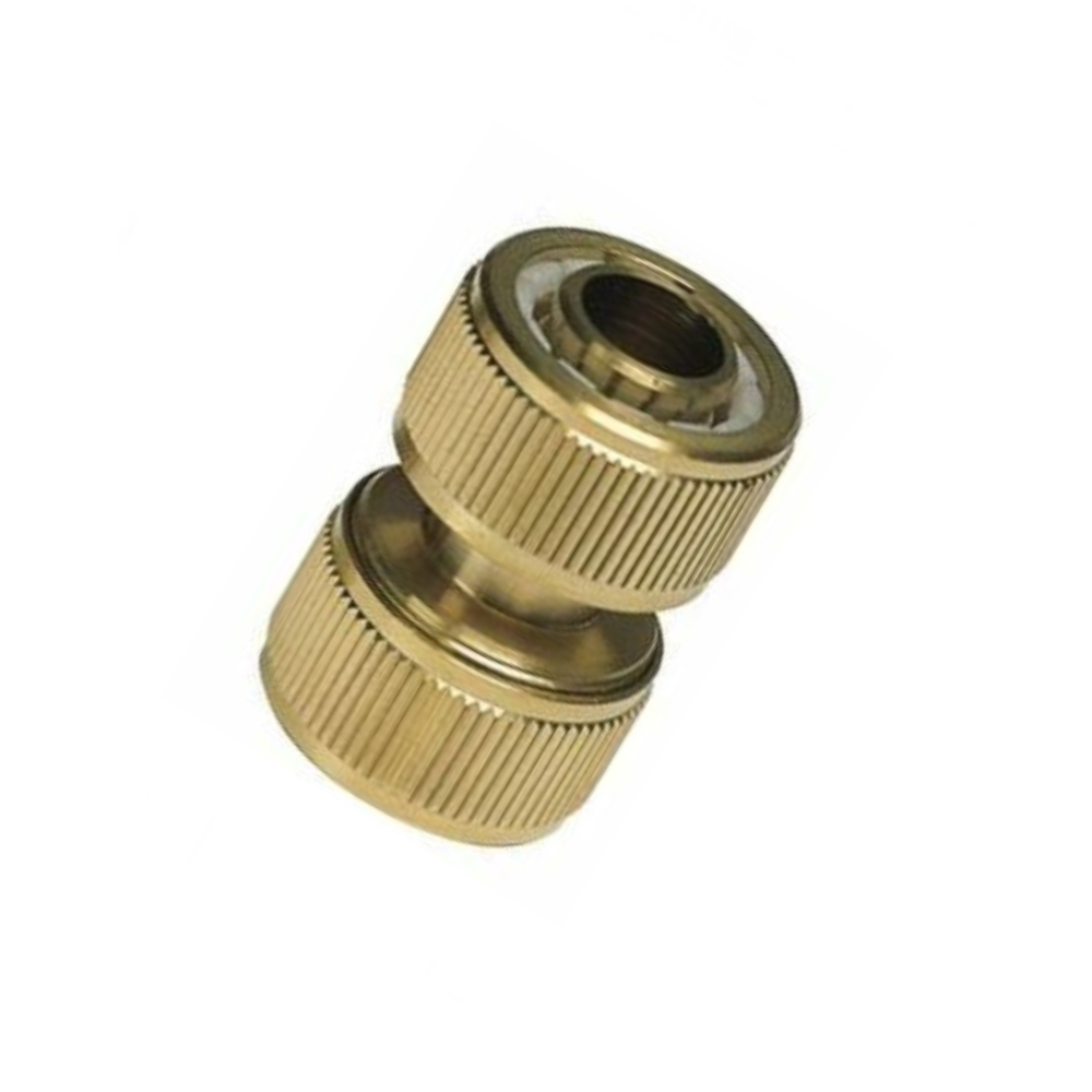 Raccordo rapido di giunzione in ottone da 3/4″, utile per unire due tubi di irrigazione del medesimo diametro.