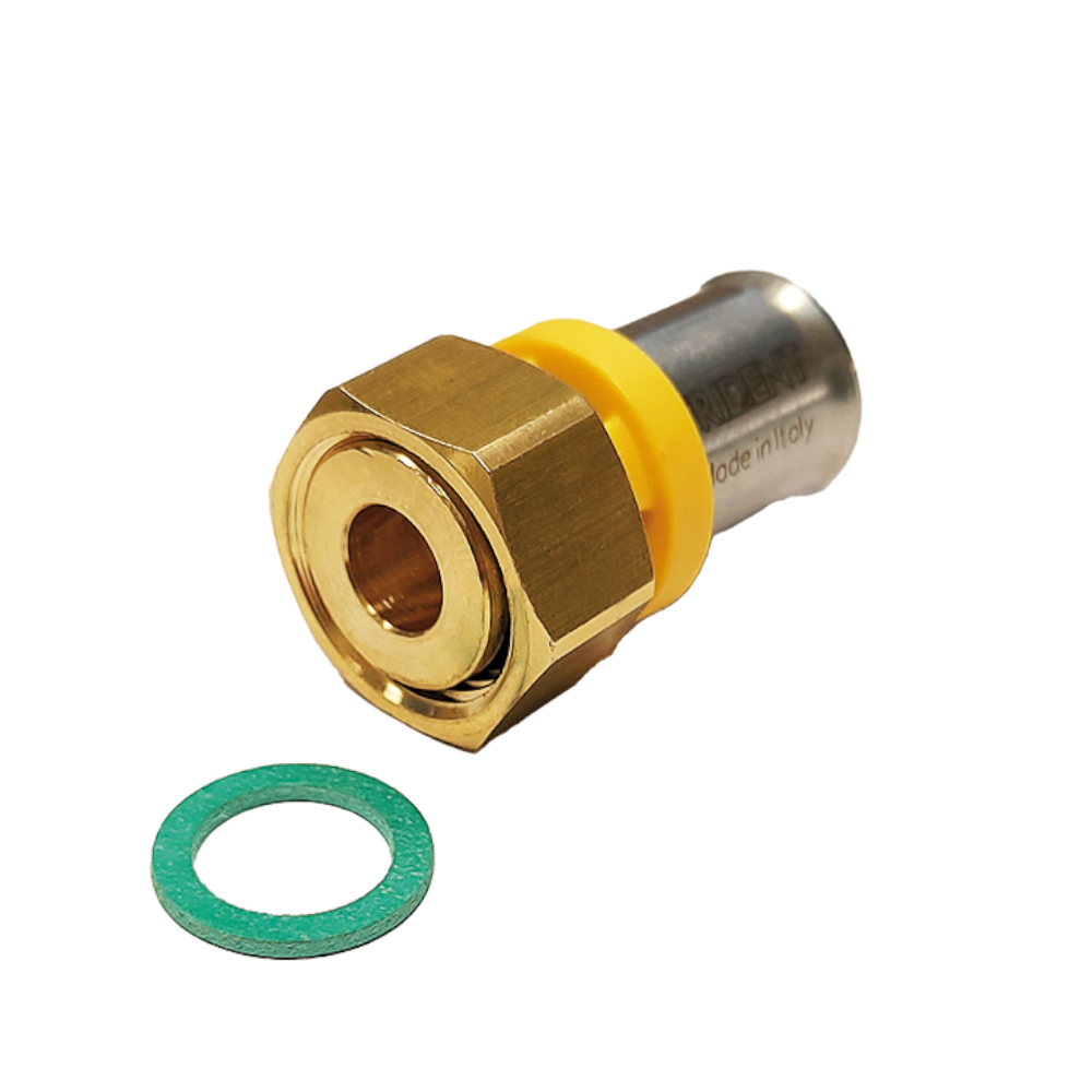 E’ il primo ed unico sistema a pressare per tubo multistrato che può essere utilizzato per acqua, gas e riscaldamento. Il manicotto Trident è un raccordo multipinza, dal Ø16 al Ø63. E’ compatibile con i profili a pressare TH, H e U. Il raccordo dritto a pressare è 100% Made in Italy. Presenta un attacco femmina diametro Ø20mm ed un attacco filettato da pollice 1/2″. Il manicotto è composto da un corpo in ottone CW617N, conforme alla normativa UNI EN 12165, e la bussola in acciaio inox AISI 304. Inoltre presenta delle finestre sul portabussola, le quali permettono di verificare la corretta inserzione del tubo. Per di più è fornito di due o-ring, i quali garantiscono la perfetta tenuta e affidabilità del prodotto nel tempo.