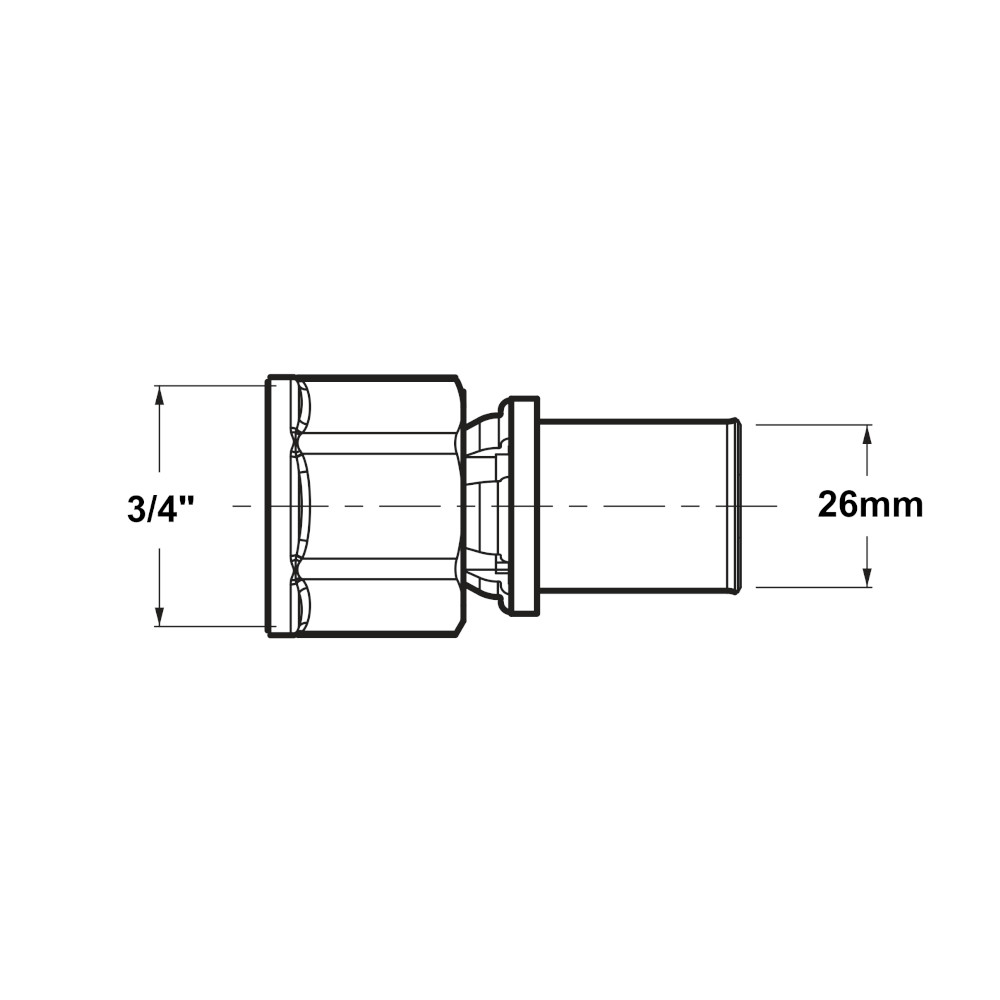E’ il primo ed unico sistema a pressare per tubo multistrato che può essere utilizzato per acqua, gas e riscaldamento. Il manicotto è un raccordo multipinza, dal Ø16 al Ø63. E’ compatibile con i profili a pressare TH, H e U. Il raccordo dritto a pressare è 100% Made in Italy. Il manicotto presenta un attacco femmina da diametro Ø26mm ed un attacco filettato da pollice 3/4″. Il raccordo è composto da un corpo realizzato in ottone CW617N, conforme alla normativa UNI EN 12165, e la bussola in acciaio inox AISI 304. Inoltre presenta delle finestre sul portabussola, le quali permettono di verificare la corretta inserzione del tubo. Per di più è dotato di due o-ring certificati acqua e gas, i quali garantiscono la perfetta tenuta e affidabilità del prodotto nel tempo.