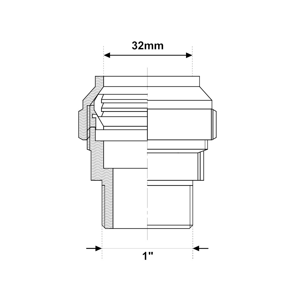 Raccordo per tubo in polietilene M 1″ – 32mm in ottone