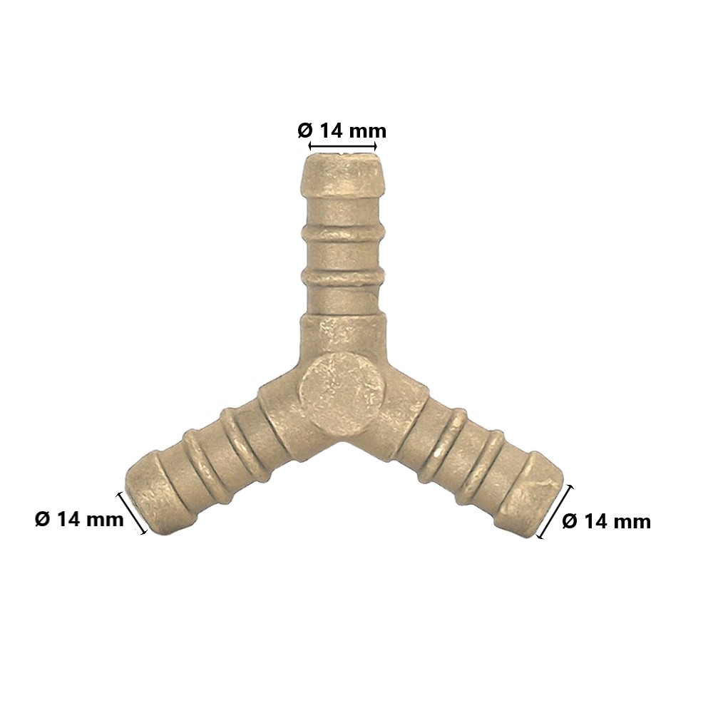 Portagomma ad “Y” in ottone giallo per tubo gas METANO. Ideale per unificare 2 uscite in 1. Ø 14 mm.